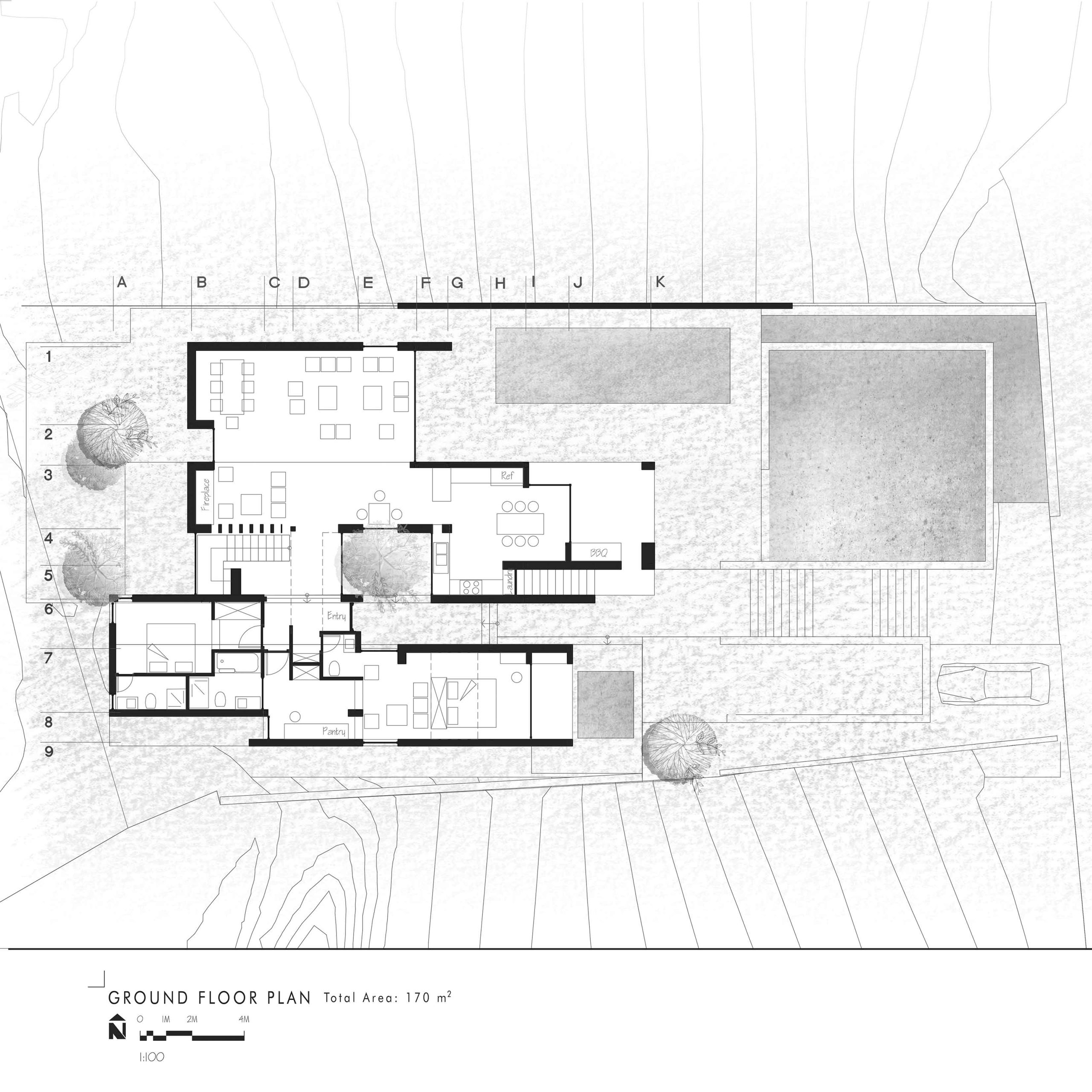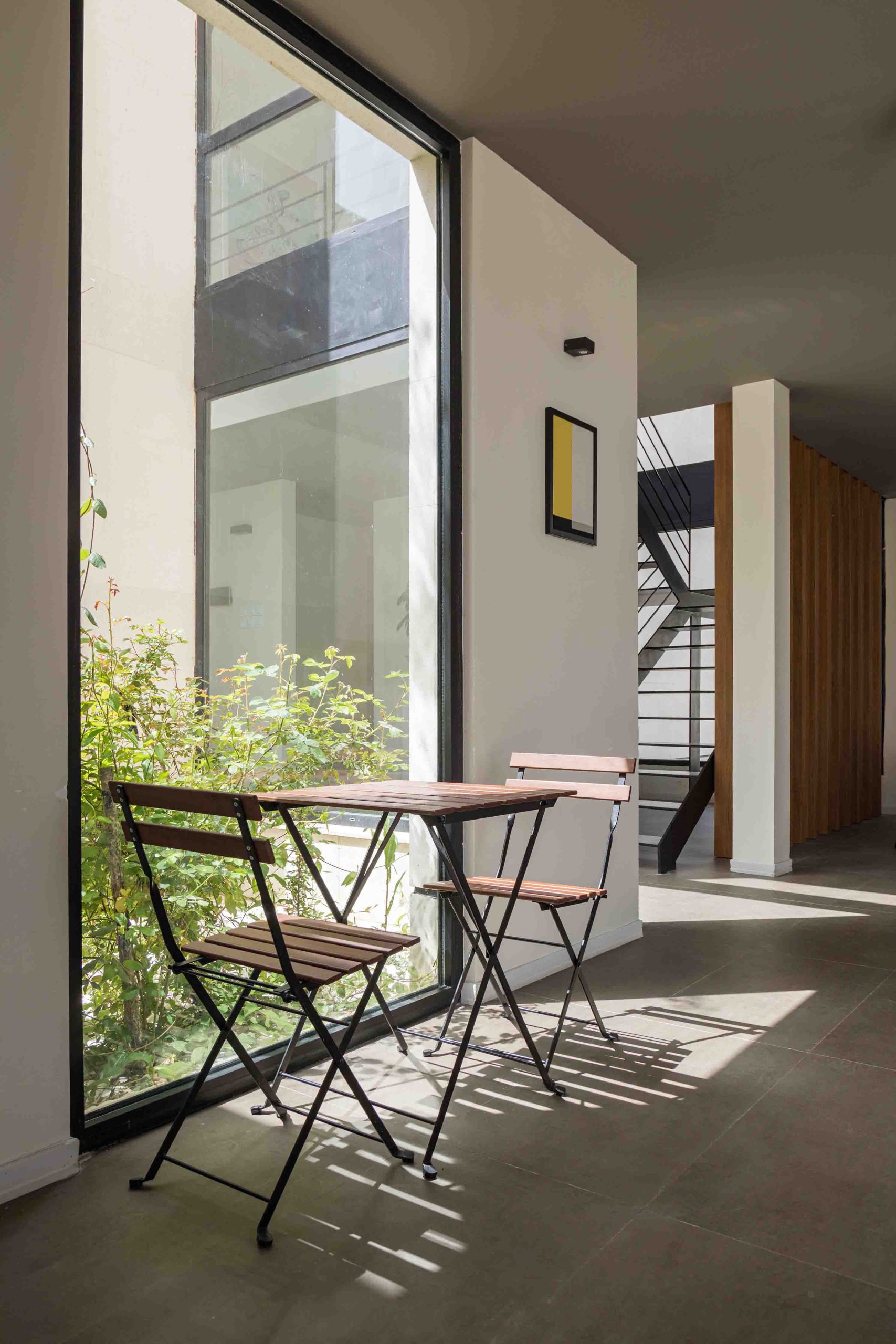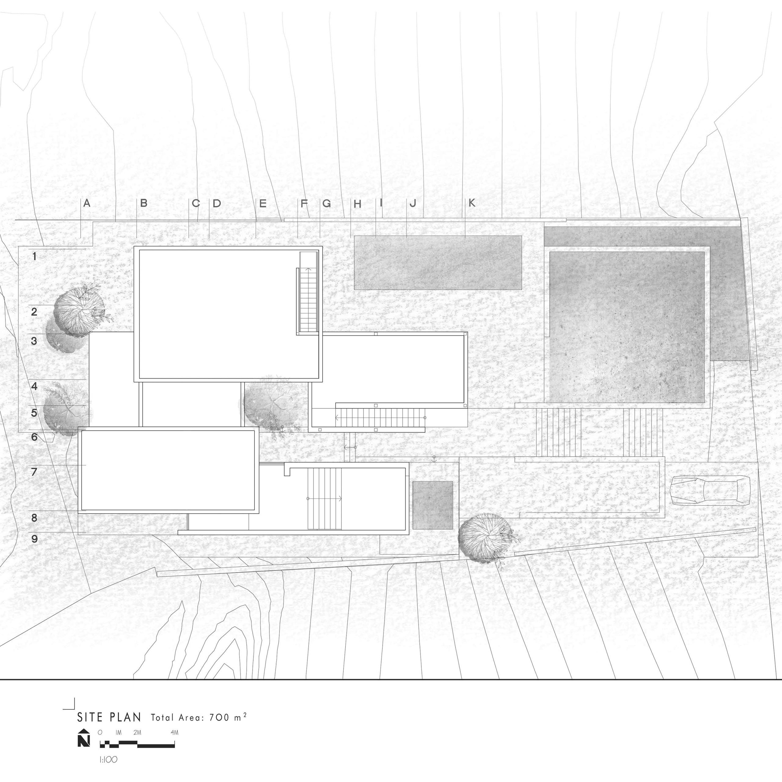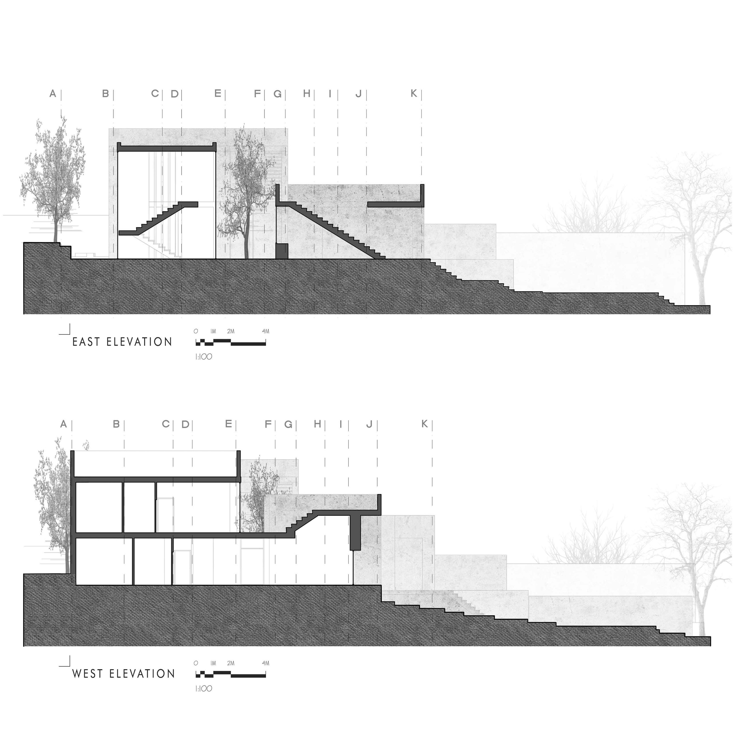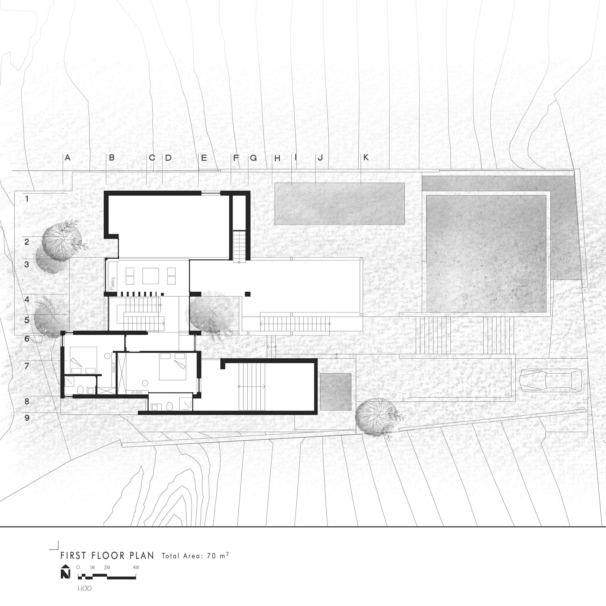 نمای شب ویلای دوبلکس با طراحی مدرن مکعبی، نورپردازی گرم، مسیر سنگی و حیاط سرسبز با المان‌های معمارانه و گیاهان تزیینی