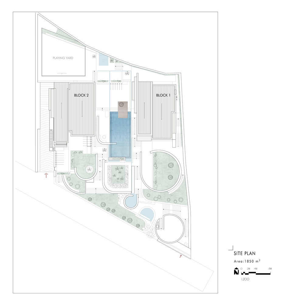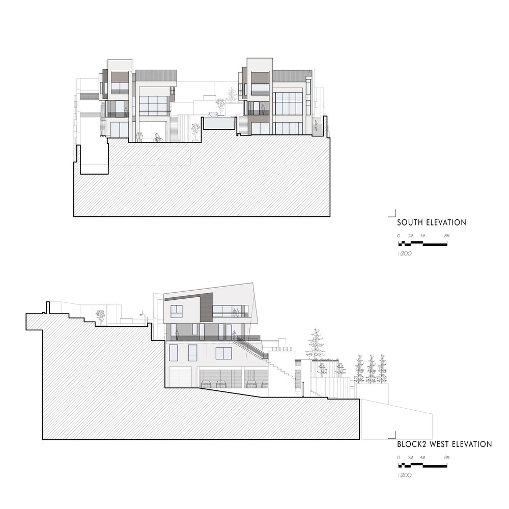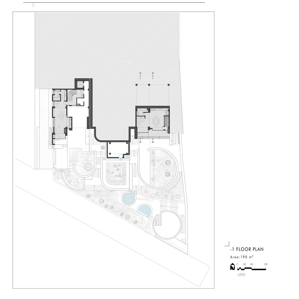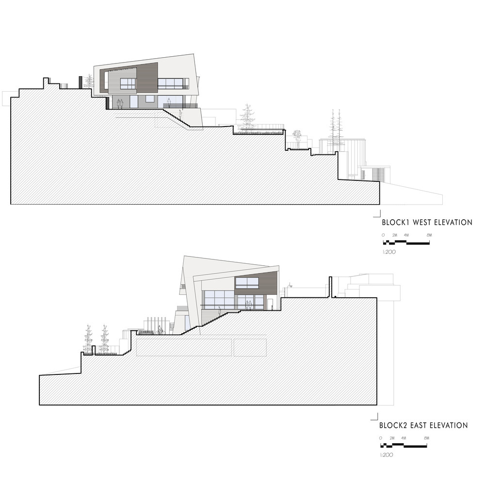 <p dir="rtl">الهام‌گیری از معماری بومی همواره چالشی جدی برای معماران است. در این پروژه، نگاه ما صرفاً فرمی نبود، بلکه تلاش کردیم «حس و ذائقه معماری بومی ایران» را در بستری مدرن بازآفرینی کنیم.<br><br>از سوی دیگر، خواسته کارفرما طراحی دو ویلای مستقل در یک زمین مشترک بود. با تعریف یک حیاط مرکزی مشترک و طراحی پله‌هایی محصور که انرژی سایت را در خود جذب می‌کنند، سطوح مختلفی در سایت شکل گرفت که به فضاهایی باز، نیمه‌باز، خصوصی و عمومی متنوع منتهی شد. این نگاه ویژه به بستر سایت، باعث ایجاد نوعی هم‌زیستی، همراهی و همسایگی میان دو ویلا شد.<br><br>این پروژه بر روی زمینی به مساحت ۲۰۰۰ متر مربع و با شیب ۴۰٪ اجرا شده است. در آغاز طراحی، مهم‌ترین چالش تعیین نحوه‌ی تقسیم‌بندی زمین بود. مطابق خواسته کارفرما، سایت به سه بخش تقسیم شد و بخش میانی به‌عنوان فضای مشترک میان دو ویلا در نظر گرفته شد. در این بخش، یک استخر به‌عنوان عنصر شاخص طراحی قرار گرفت و دو مسیر پله که ستون فقرات پروژه و مرزهای جداکننده‌ی دو ویلا هستند، به سایت شکل دادند. این پله‌ها پایین‌ترین و بالاترین سطح زمین را به یکدیگر متصل می‌کنند.<br><br>دو ویلا در سمت چپ و راست سایت به‌گونه‌ای قرار گرفتند که حیاط و پله‌ها را در آغوش گرفته‌اند. فضاهای عمومی ویلاها رو به حیاط مشترک هستند و فضاهای خصوصی به سمت مناظر اطراف. بر اساس این تقسیم‌بندی، هر بلوک از سه تراز اصلی تشکیل شده است. پله‌های سایت به پاگردهایی در هر تراز می‌رسند که به حیاط‌هایی در مقابل بازشوهای ویلا منتهی می‌شوند.<br><br>شیب زیاد سایت، امکان جاری شدن آب را فراهم کرده است. آب باران از طریق مسیرهایی طبیعی حرکت کرده و در حوضچه‌هایی در پایین‌ترین نقطه زمین ذخیره می‌شود.<br><br>سقف‌ها در جهات مختلف شیب‌دار طراحی شده‌اند و بازشوهای وسیع، پاسخگوی شرایط اقلیمی پروژه هستند. این بازشوها بیشترین دید ممکن را از داخل به بیرون و بالعکس ایجاد می‌کنند و در عین حال، حریم بصری مناسبی برای فضاها به وجود آورده‌اند.</p>