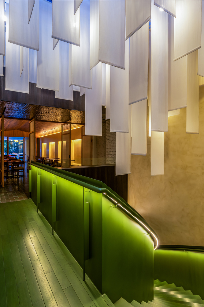 MORICO یک پروژه بازسازی برای یک کافه و رستوران واقع در مرکز شهر هوشی مین است. ساختمان موجود یک خانه ردیفی آجری قدیمی به عرض 5 متر و عمق 37 متر است که رو به خیابان اصلی مرکز شهر است. بسیاری از مغازه های اطراف دارای دیوارهای شیشه ای رو به جاده هستند تا فضای تهویه مطبوع را به حداکثر برسانند که ارتباط آنها را با شهر قطع می کند. در شهرهای گرمسیری، با تجاری‌تر شدن خیابان‌ها، عمق شهر از بین می‌رود و پیاده‌روها به گذرگاه‌ها تبدیل می‌شوند. در این پروژه، یک "چاله بزرگ" که در خیابان شلوغ باز می شود، به عنوان ورودی مغازه عمل می کند. با فرورفتن دیوار شیشه ای و ایجاد فضایی نیمه عمومی در امتداد پیاده رو، مغازه نقش خود را به عنوان بخشی از شهر بازیافت. گیاهان پلکانی مناطقی را برای "ماندن" در بیرون فراهم می کنند، و اگرچه با خیابان ارتباط برقرار می کند، فضای آرامی به سمت عقب گسترش می یابد. این رویکرد شبیه به این است که کوچه‌های ویتنامی فضاهای تجمع را در بلوک‌های شهر ایجاد می‌کنند. پیشخوان نیمه باز – آشپزخانه های اپن اغلب عملکرد مغازه را محدود می کنند و در عین حال تعامل بین مغازه و مشتریانش را افزایش می دهند. در آشپزخانه نیمه باز پیشخوان، که دارای حجم های بالا و پایین ناهماهنگ است، کارکنان نیازی به مراقبت بیش از حد در مورد حفظ مرتب بودن کامل ندارند. آنها به راحتی می توانند در حین تعامل با مشتریان به آنچه نیاز دارند برسند. حیاط و نورن - ساختمان اولیه شامل یک خانه اصلی و یک خانه مستقل بود که یک حیاط در بین آن قرار داشت. این محوطه حیاط قبل از بازسازی با 2 طبقه و سقف شیشه ای پوشیده شده بود و به عنوان فضایی پیوسته عمل می کرد. با بازسازی دهلیز، نوری که به اتاق عمیق و باریک فیلتر می‌شود، اکنون به طبقه اول می‌رسد و بر فضا تأکید می‌کند. زیر سقف شیشه ای، 180 پرده نورن آویزان شده است و الگوهای سایه ها در طول زمان تغییر می کنند. این چیدمان نمایانگر مفهوم «ژاپنی معاصر» فروشگاه در فرم معماری است. خانه اصلی جدید – هدف طراحی ما بازگرداندن ترکیب از دست رفته قبل از بازسازی و حفظ وحدت فضا است. خانه اصلی جدید در طبقه دوم قرار گرفته و بالای سطح زمین شناور است، بنابراین تداوم و فضای معمولی طبقه اول را مختل نمی کند. برعکس، خانه اصلی جدید در طبقه دوم فضایی آرام دارد و آن را برای پذیرایی از مشتریان مناسب می کند. هنگامی که درها بسته می شوند، می تواند به عنوان یک اتاق خصوصی بزرگ عمل کند و همچنین انتظار می رود که به عنوان یک مکان رویداد نیز خدمت کند.