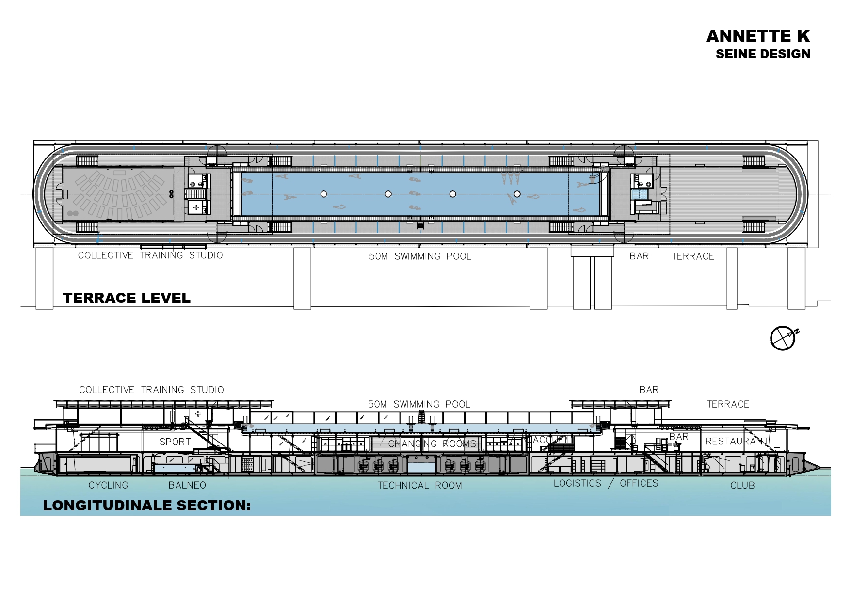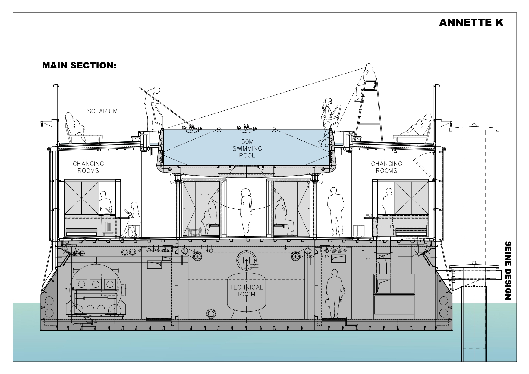 Annette K یک فضای نشیمن است که به رفاه جسم و ذهن اختصاص دارد. پاریس در آرزوی فضایی برای حمام کردن بود که یادآور استخر شنای گمشده دلینی یا آبهای دوران امپرسیونیسم باشد. بودن در نزدیکی رود سن، حمام کردن، آفتاب گرفتن و رونق در فضاها و روز جذابیت این پروژه بود.