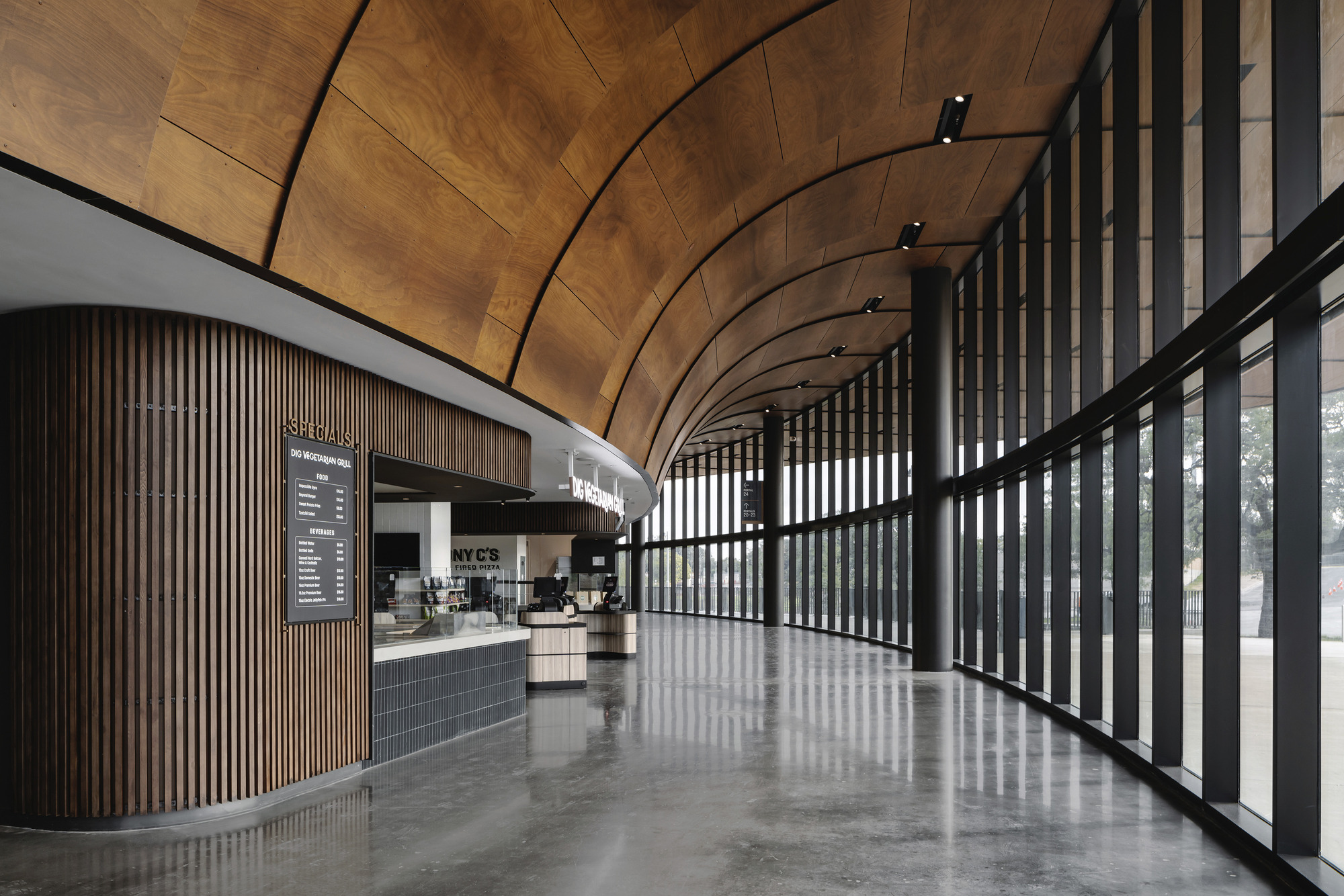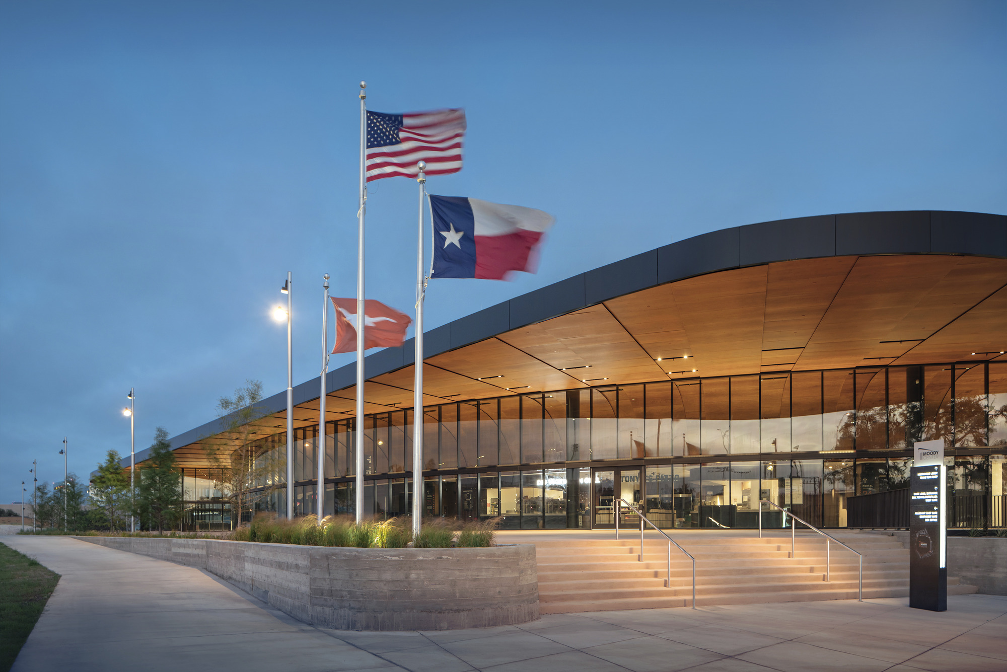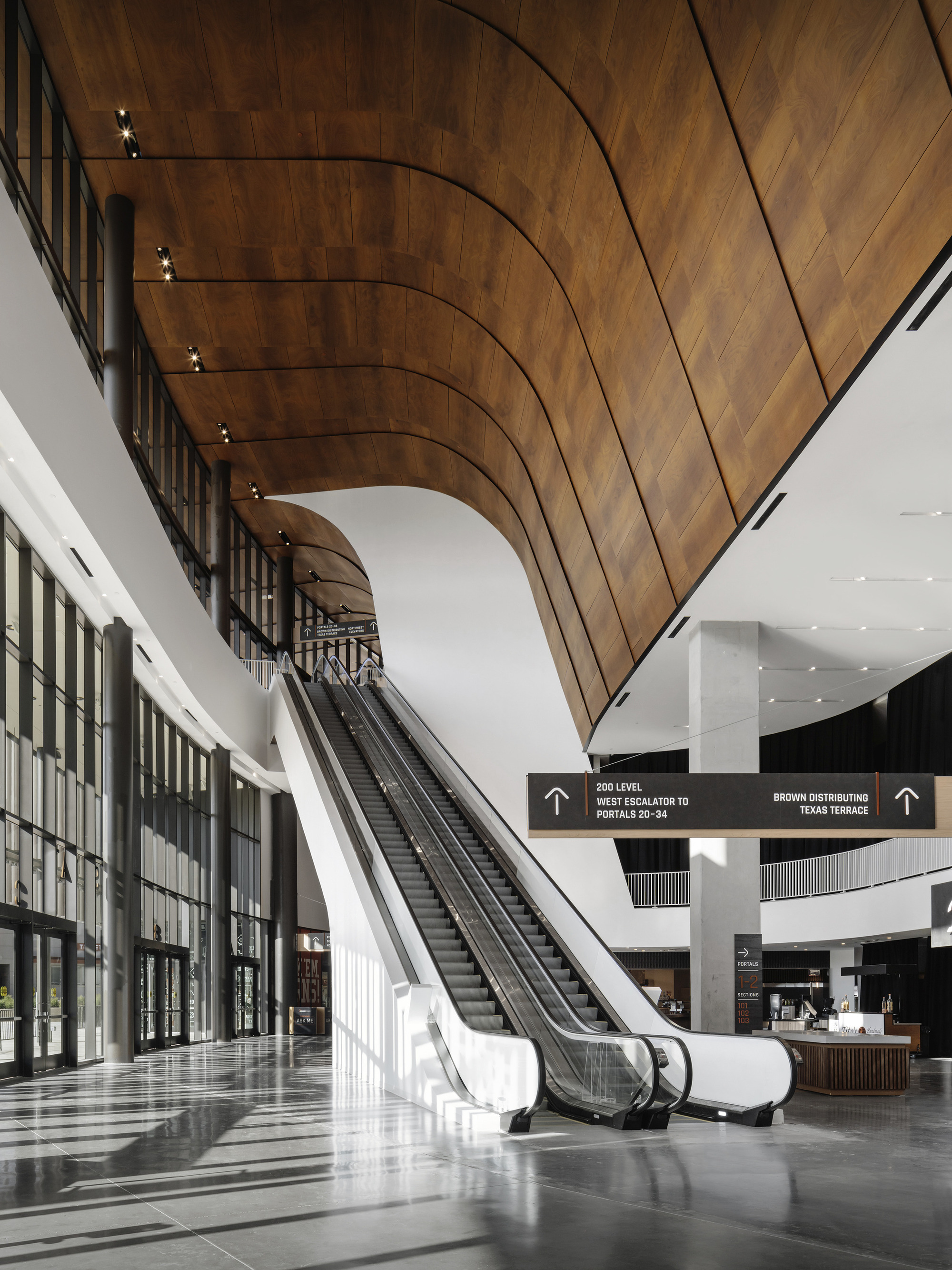 دانشگاه تگزاس در ورزشگاه بسکتبال و رویدادهای مرکز آستین مودی، "مرکز مودی"، از لحظه ای که طرفداران به میدان تعاملی می رسند تا زمانی که به صندلی های خود می رسند، تجربه ای همه جانبه ایجاد می کند. امکانات بیش از 15000 صندلی با ایجاد یک میدان روز بازی که تمام امکانات ورزشی دانشگاه را به هم متصل می کند و به عنوان فضایی برای تجمع هواداران، عموم و ورزشکاران عمل می کند، طرح اصلی را تکمیل می کند. تعامل، طراحی را هدایت میکند و فضاهای داخلی/خارج را با هم ترکیب میکند و تجربهای منسجم و رو به جلو را به همراه دارد. این عرصه جرات متفاوت بودن را دارد، بدون ربودن تمرکز از دیگر ساختمانهای ورزشی دانشگاه UT، با احترام به مادی بودن محوطه دانشگاه و معرفی یک رویکرد مدرن به سیستمها و جزئیات. طراحی شده برای ایجاد فضاهای شهری محرک، امکانات ورزشی را با توسعه فعلی و آینده UT ادغام می کند.
