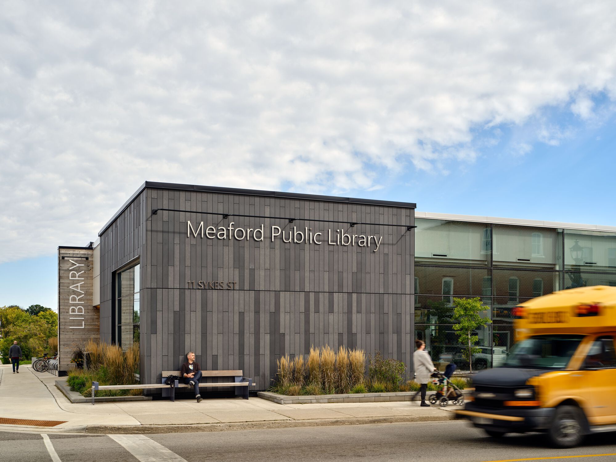 در Meaford، انتاریو، یک کتابخانه جدید، یک جامعه در حال رشد را با زیبایی های طبیعی و تاریخ شهر خود پیوند می دهد. در دروازه منطقه میراث مرکز شهر و در ساحل رودخانه بیگ هد، استفاده مجدد تطبیقی ​​شرکای معماری LGA از یک سوپرمارکت، یک مرکز پر نور ایجاد می کند که برای همه ساکنان خوش آمد می گوید و حس عمیقی از مکان را ارائه می دهد.