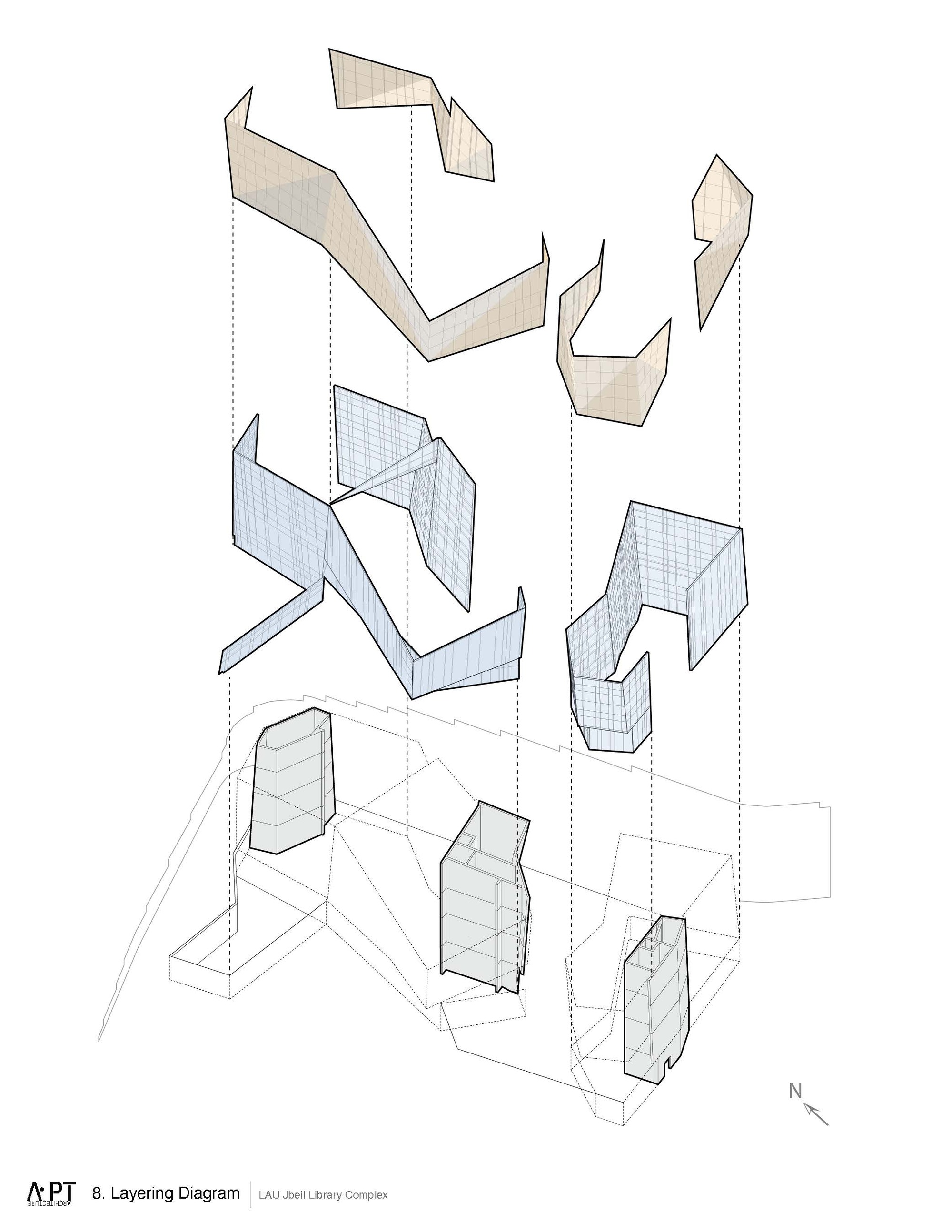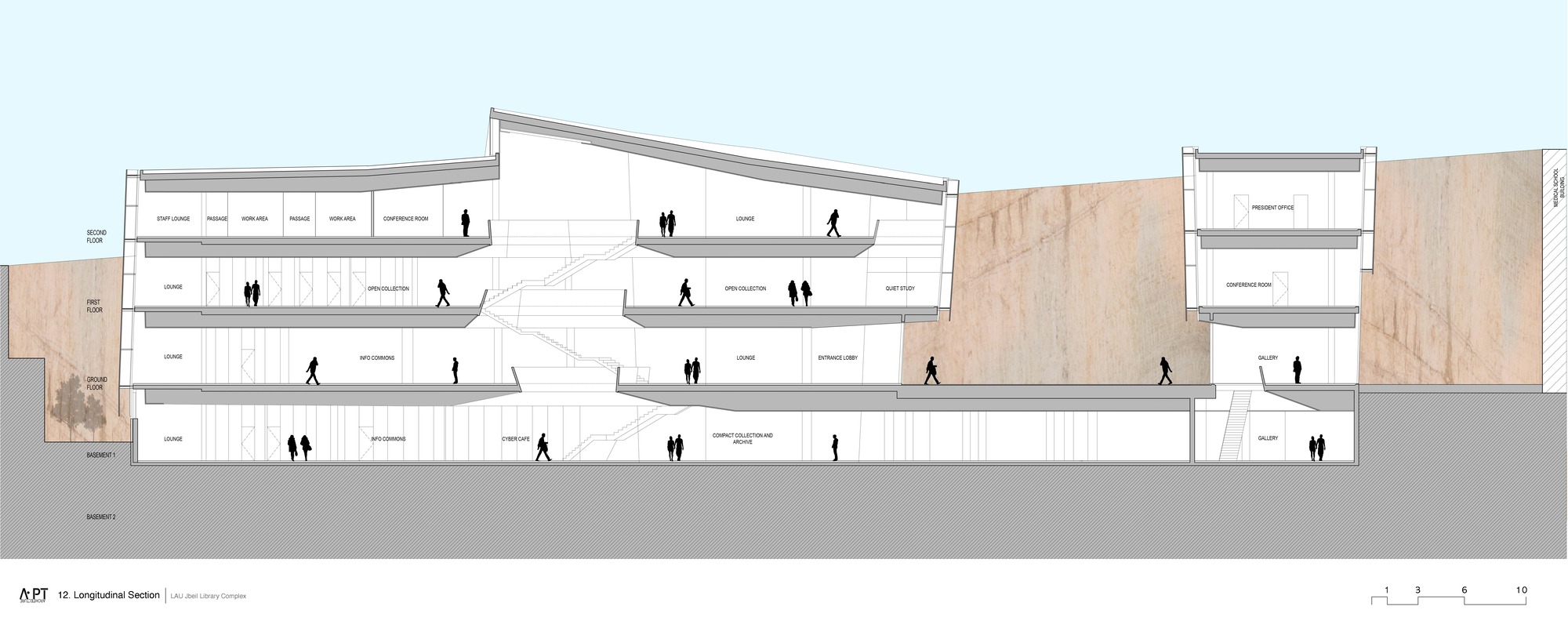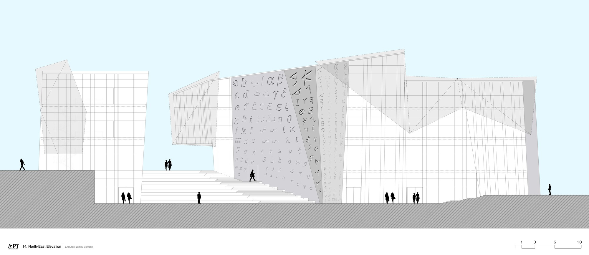 دانشگاه آمریکایی لبنانی به Atelier Pagnamenta Torriani دستور داد تا یک کتابخانه جدید و یک ساختمان اداری مرکزی در پردیس بیبلوس خود - بالای شهر جبیل (یا بیبلوس) طراحی کند، جایی که فنیقی ها اولین الفبای آوایی جهان را کدگذاری کردند. سنگ حفاری شده و کوه برهنه بالای سایت اولین برداشت من در هنگام بازدید از محوطه پردیس بیبلوس بود. بنابراین، سنگ رسوبی در معرض و تاریخ پیچیده و طبقه بندی شده منطقه الهام بخش اصلی طراحی APT شد.