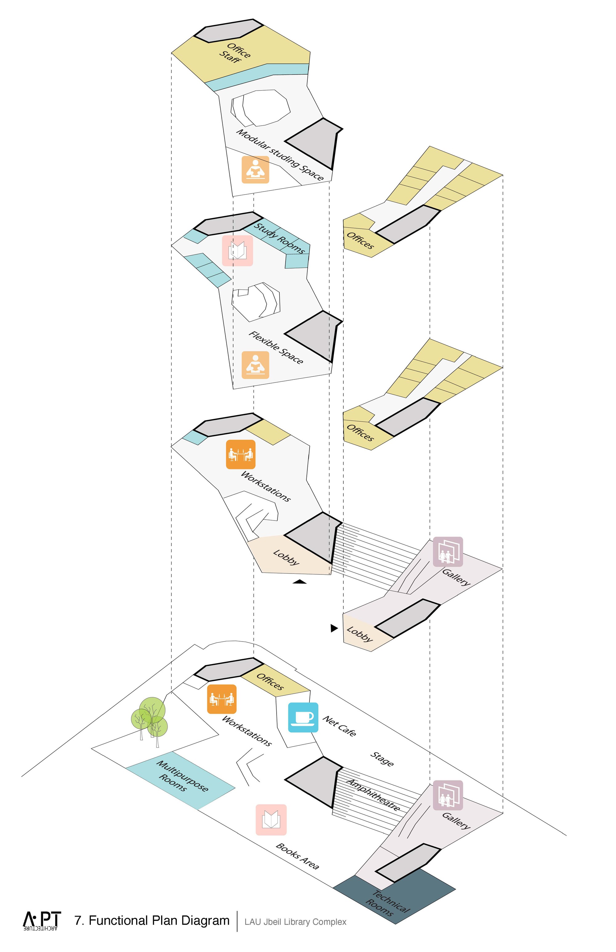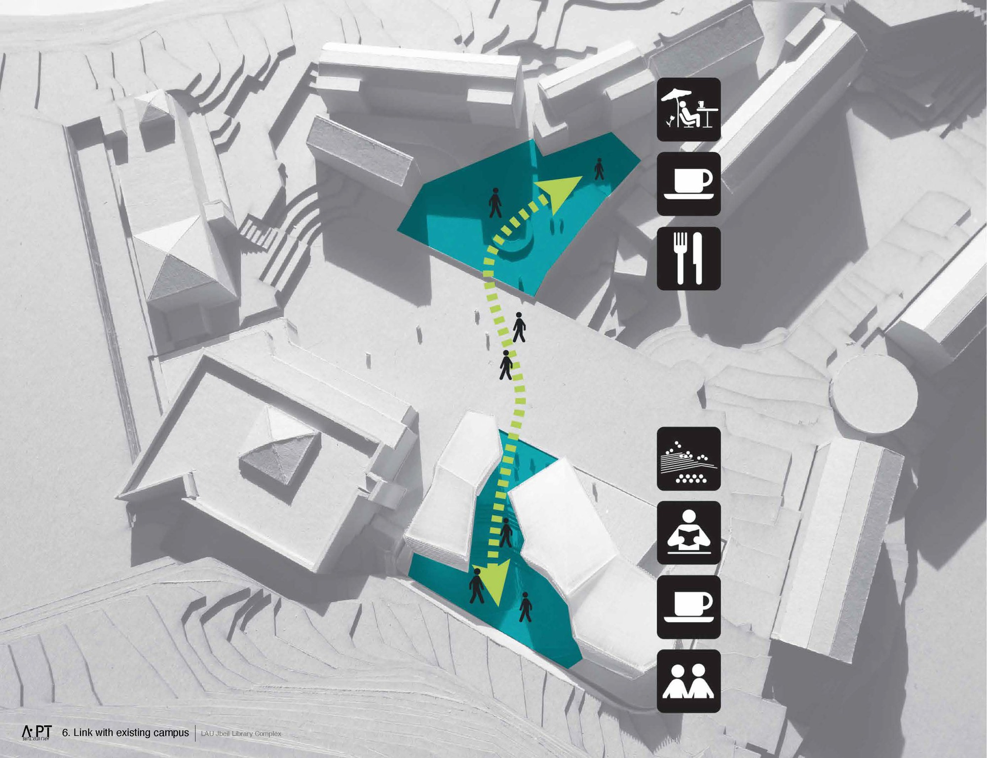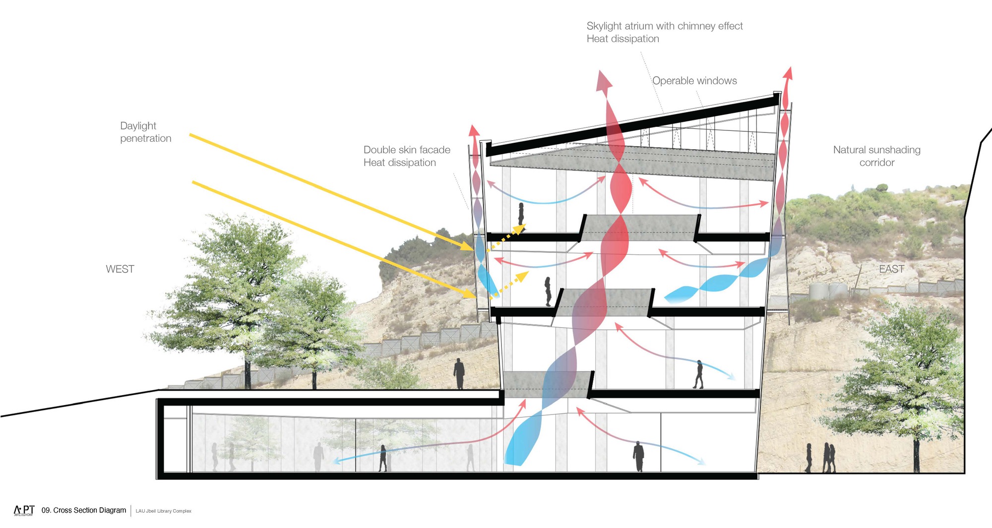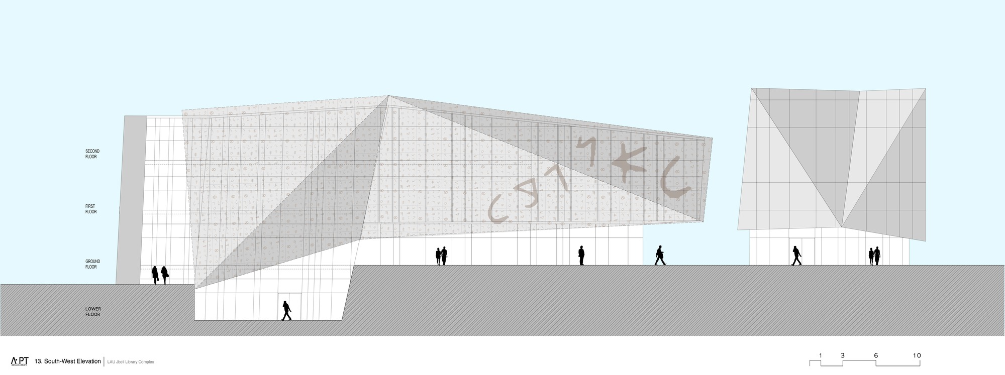 دانشگاه آمریکایی لبنانی به Atelier Pagnamenta Torriani دستور داد تا یک کتابخانه جدید و یک ساختمان اداری مرکزی در پردیس بیبلوس خود - بالای شهر جبیل (یا بیبلوس) طراحی کند، جایی که فنیقی ها اولین الفبای آوایی جهان را کدگذاری کردند. سنگ حفاری شده و کوه برهنه بالای سایت اولین برداشت من در هنگام بازدید از محوطه پردیس بیبلوس بود. بنابراین، سنگ رسوبی در معرض و تاریخ پیچیده و طبقه بندی شده منطقه الهام بخش اصلی طراحی APT شد.