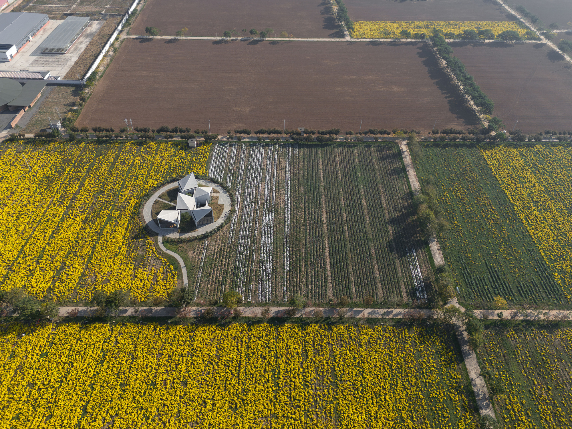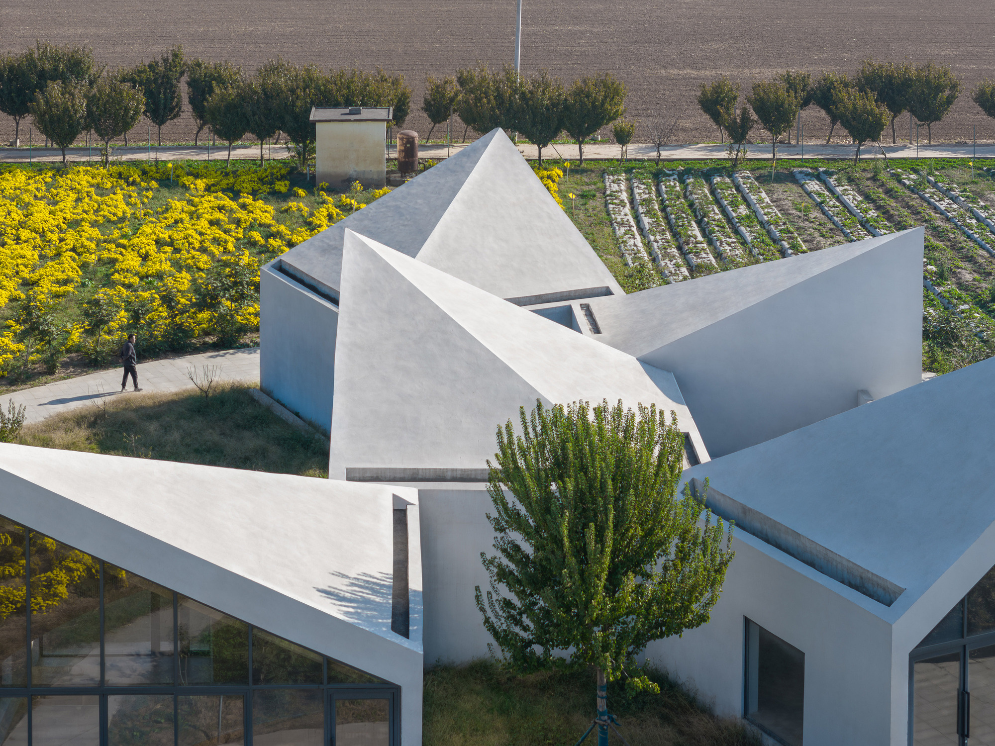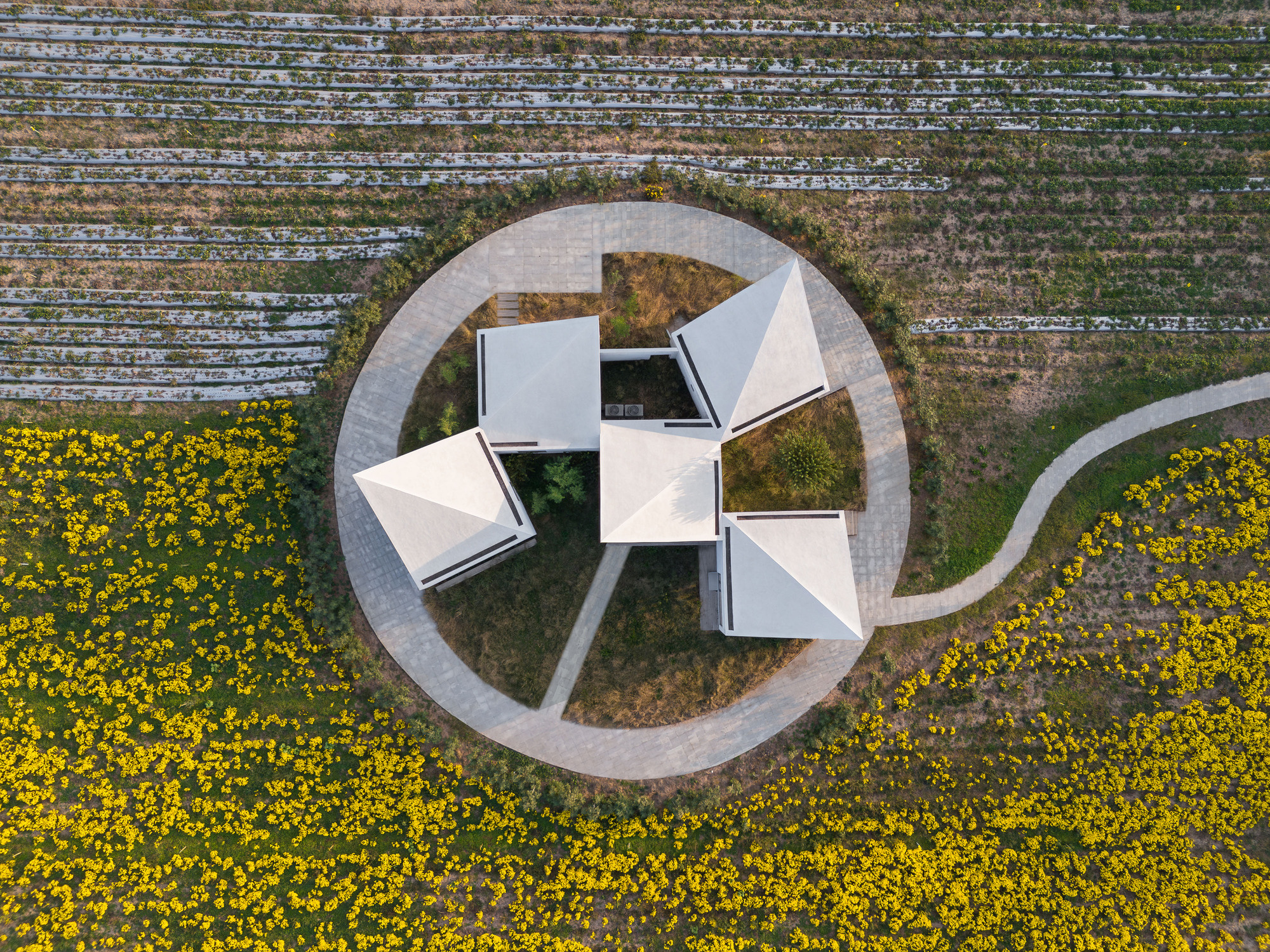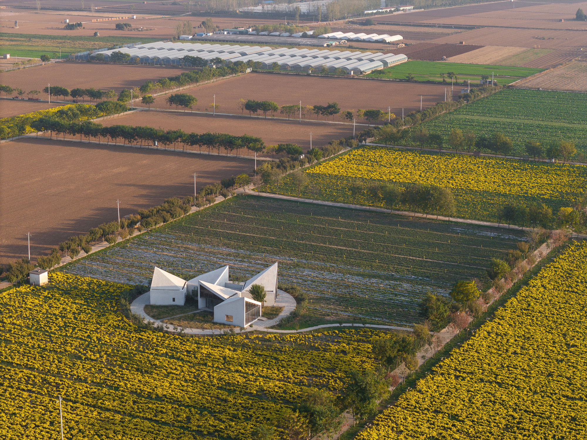 کتابخانه در مزرعه وسیع گل داودی یخی در دامنه کوه یونتای واقع شده است. از معمار دعوت شد تا یک ساختمان چند منظوره برای استفاده جامعه طراحی کند. مزه چای گل داوودی یخ، کتابخوانی، اجراهای موسیقی در مقیاس کوچک، کارگاه های آموزشی برای آموزش کشاورزی و ذخیره سازی ابزارهای کشاورزی را در خود جای داده است.