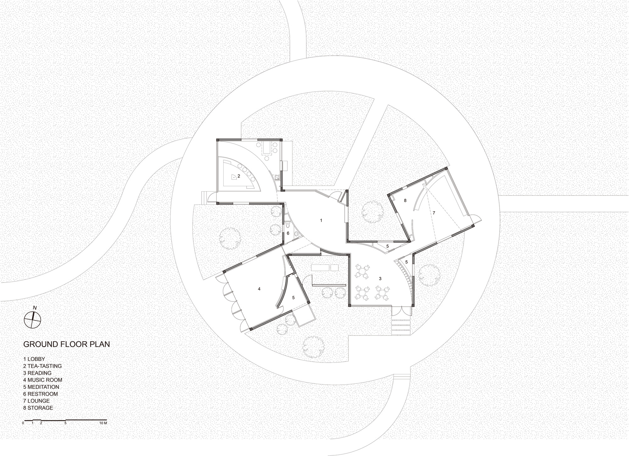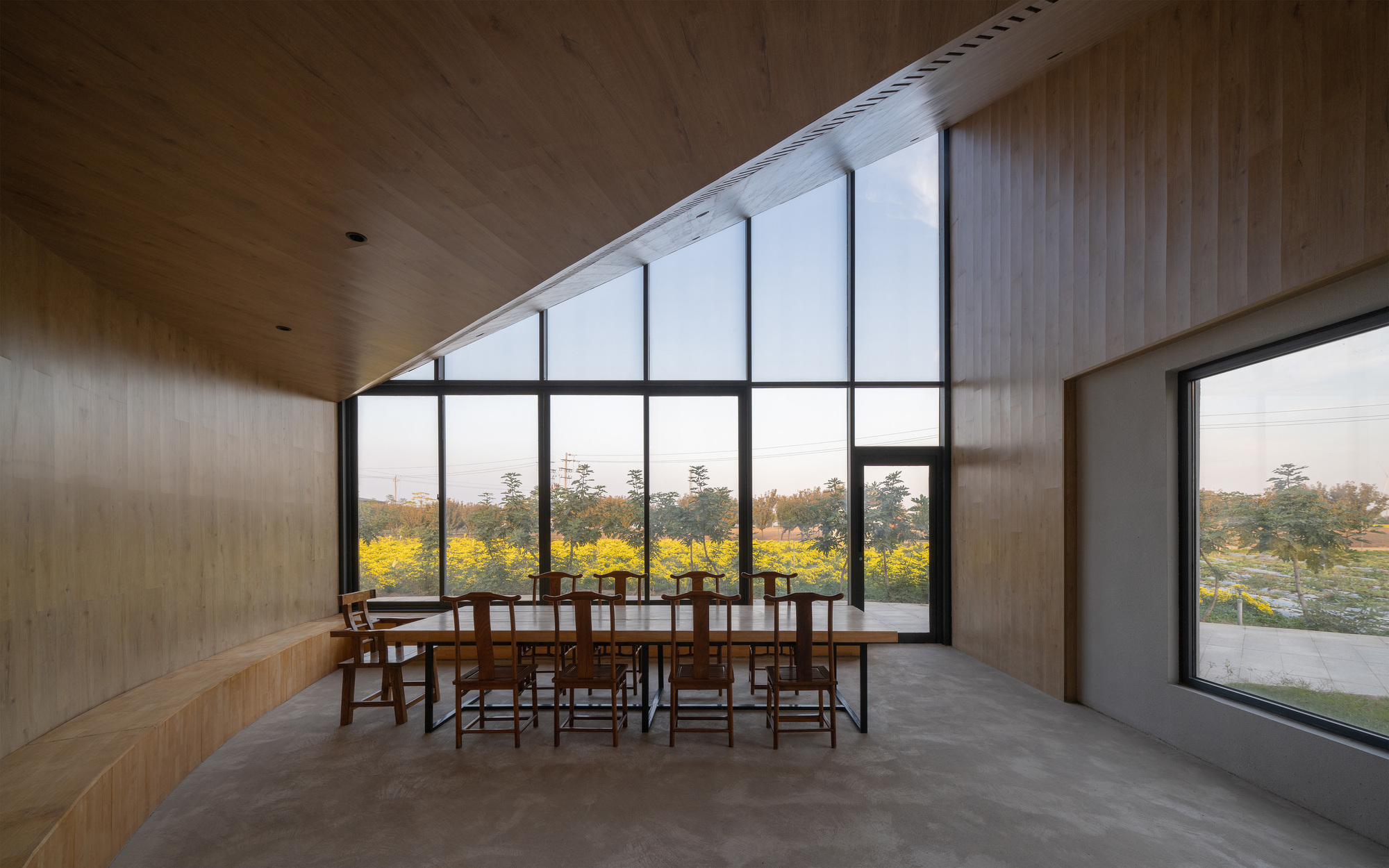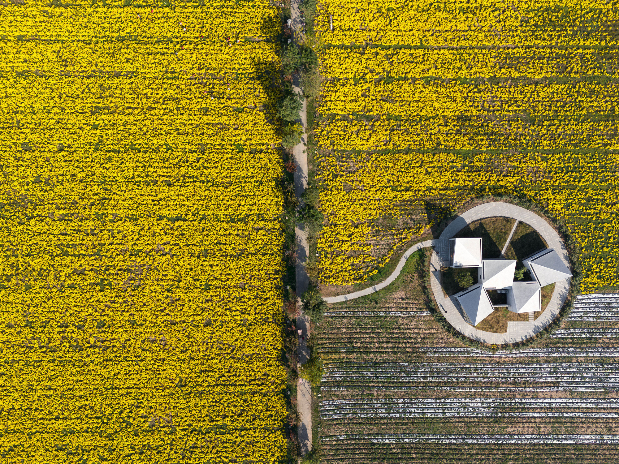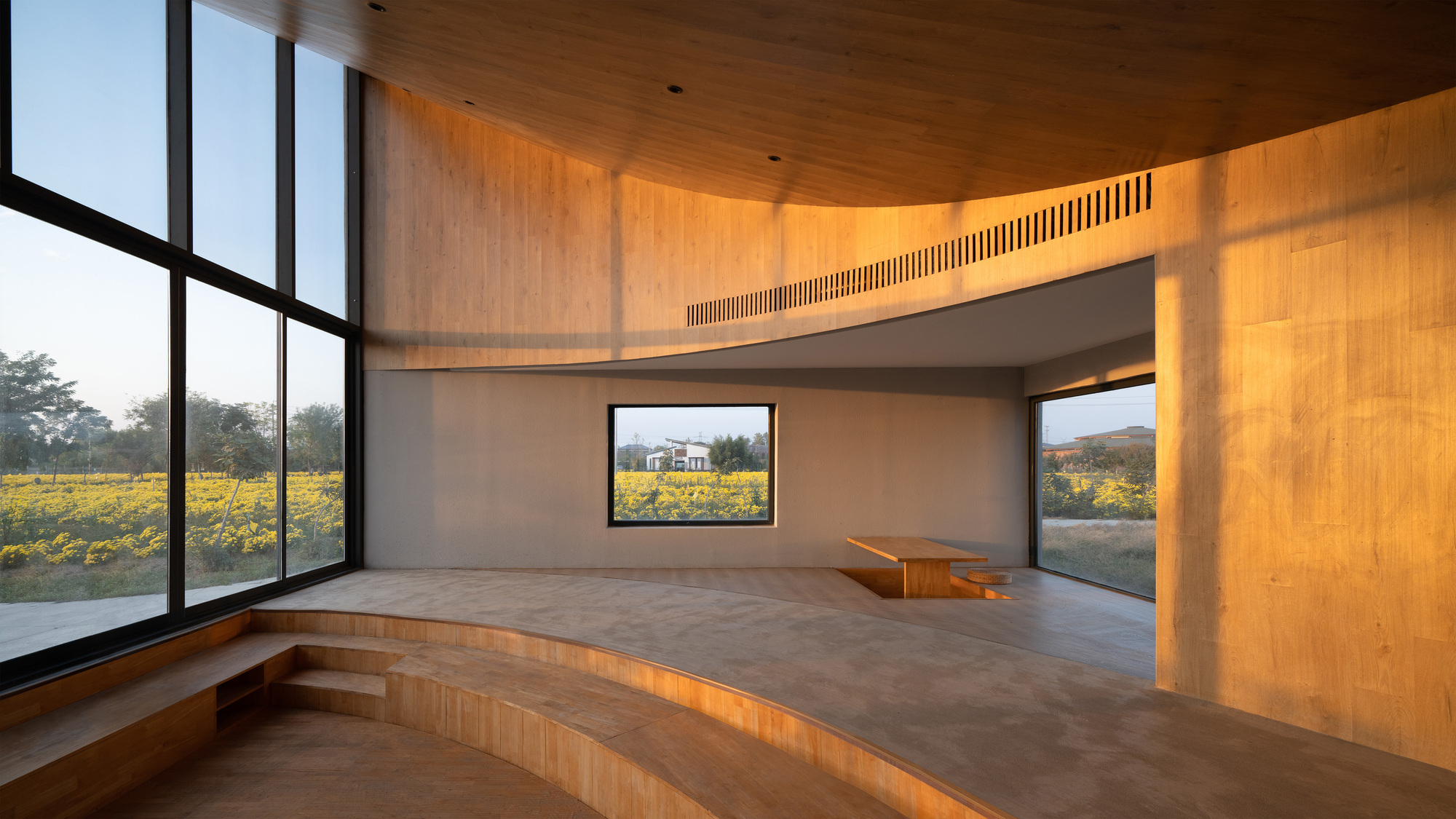 کتابخانه در مزرعه وسیع گل داودی یخی در دامنه کوه یونتای واقع شده است. از معمار دعوت شد تا یک ساختمان چند منظوره برای استفاده جامعه طراحی کند. مزه چای گل داوودی یخ، کتابخوانی، اجراهای موسیقی در مقیاس کوچک، کارگاه های آموزشی برای آموزش کشاورزی و ذخیره سازی ابزارهای کشاورزی را در خود جای داده است.