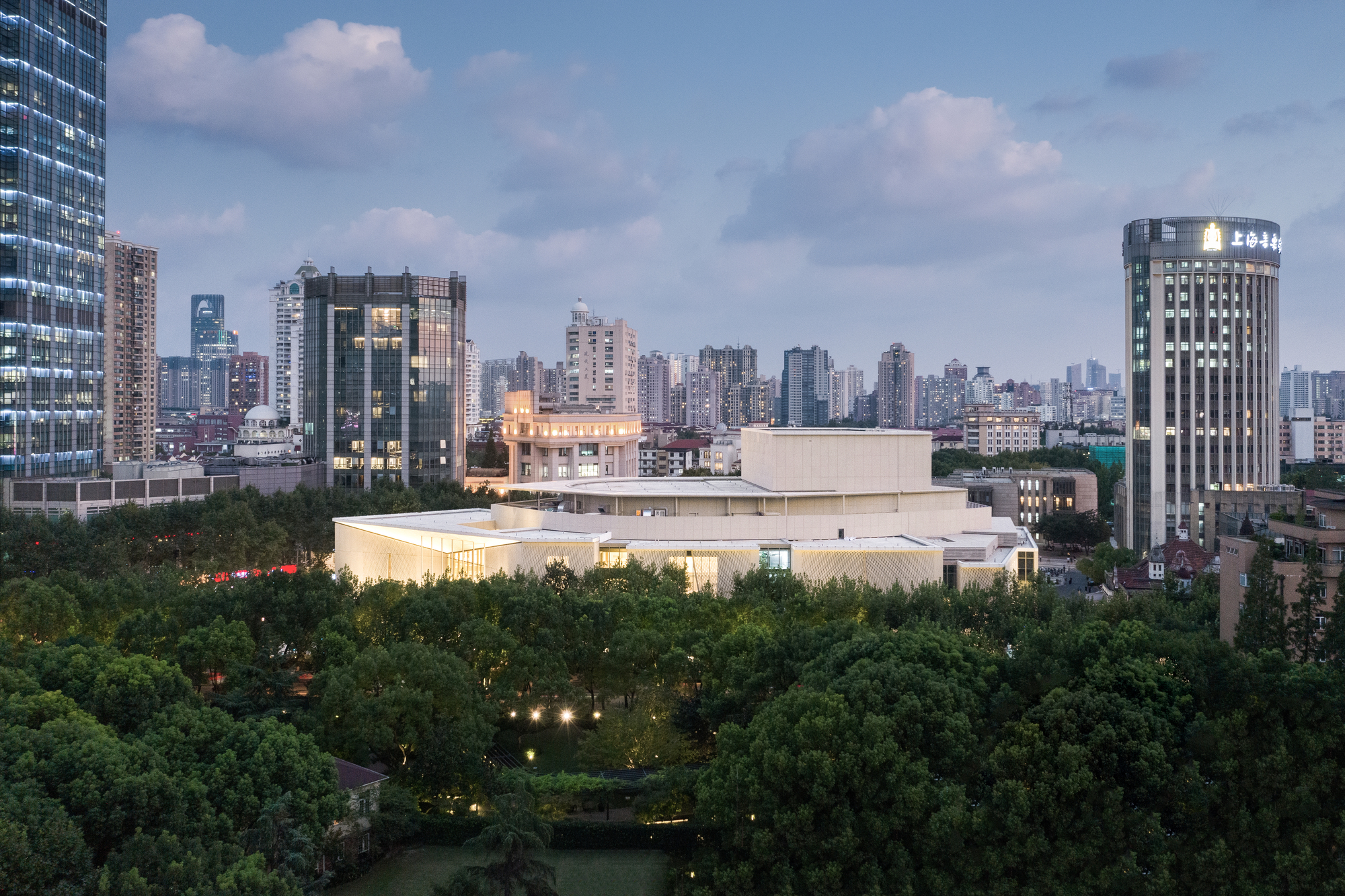 این خانه اپرا جدید واقع در جاده Fenyang و جاده Huaihai با یک ورودی عمومی بزرگ در گوشه این دو خیابان اصلی در امتیاز سابق فرانسه افتتاح می شود. برای هماهنگی آن با ریتم و ارتفاع ساختمان‌های اطراف، به‌ویژه هنرستان جدید در جاده Fenyang، خانه اپرا به‌عنوان مجموعه‌ای از غرفه‌ها طراحی شده است که الگوی مرسوم ساخت‌وساز عظیم در یک ساختمان را شکسته است.