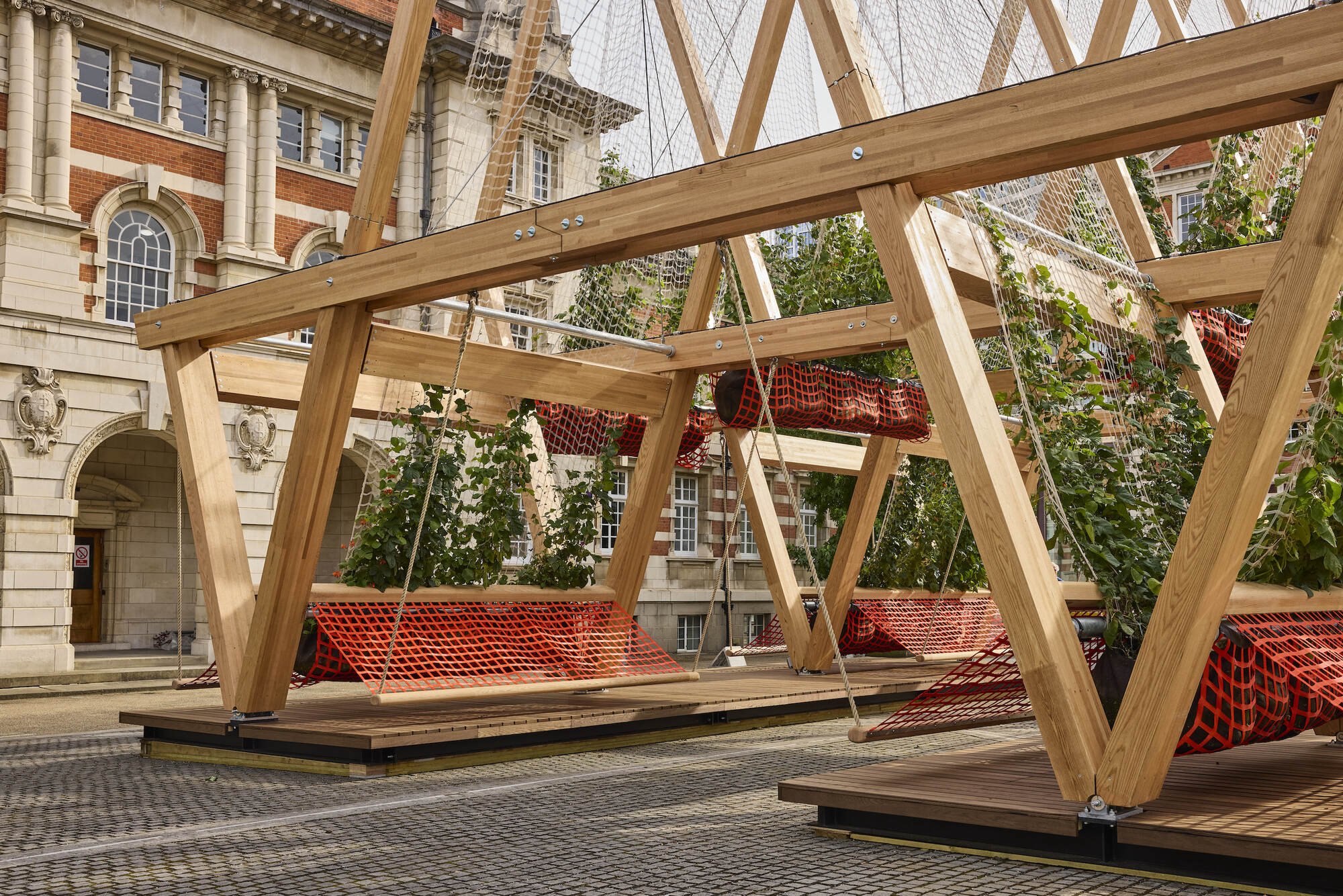 با افزایش دما و تشدید امواج گرما، همراه با کاهش تنوع زیستی در شهرهای سراسر جهان، نیاز فوری به بازنگری در توسعه شهری وجود دارد. Vert که در یک همکاری سه جانبه بین شورای صادرات چوب سخت آمریکا (AHEC)، استودیوی طراحی صنعتی استفان دیز Diez Office، و متخصصان فضای سبز شهری OMCºC ابداع شده است، یک پیشنهاد آزمایشی برای یک ساختار مدولار است که می تواند به هر دو موضوع رسیدگی کند. این پروژه که در مدرسه هنر چلسی در طول جشنواره طراحی لندن رونمایی شد، ساختار چوبی را پیشنهاد می‌کند که به خنک کردن شهر کمک می‌کند و در عین حال به راحتی با زیرساخت‌های موجود ادغام می‌شود. بادبان های بلند پوشیده از گیاهان کوهنوردی برای تثبیت دی اکسید کربن در هوا کار می کنند و در عین حال مناطقی از سایه خنک کننده ایجاد می کنند - فضاهایی سرپناه برای مکث افراد. Vert که از مواد پایدار ساخته شده است، جذابیت زیبایی شناختی را با مزایای زیست محیطی ملموس ترکیب می کند و نشان دهنده یک رویکرد دگرگون کننده برای توسعه شهری است.