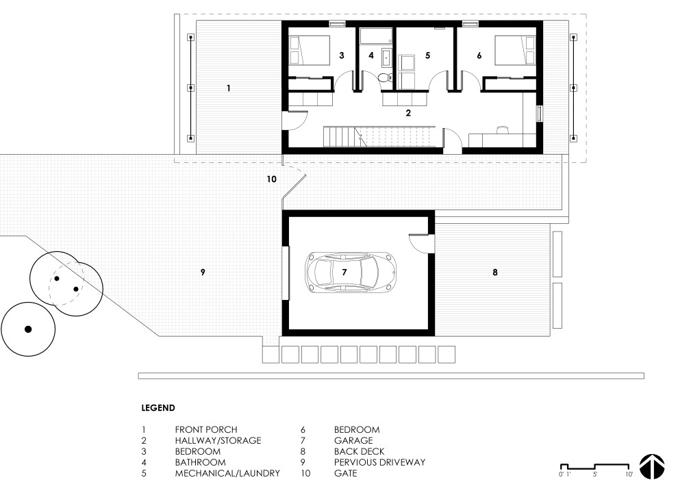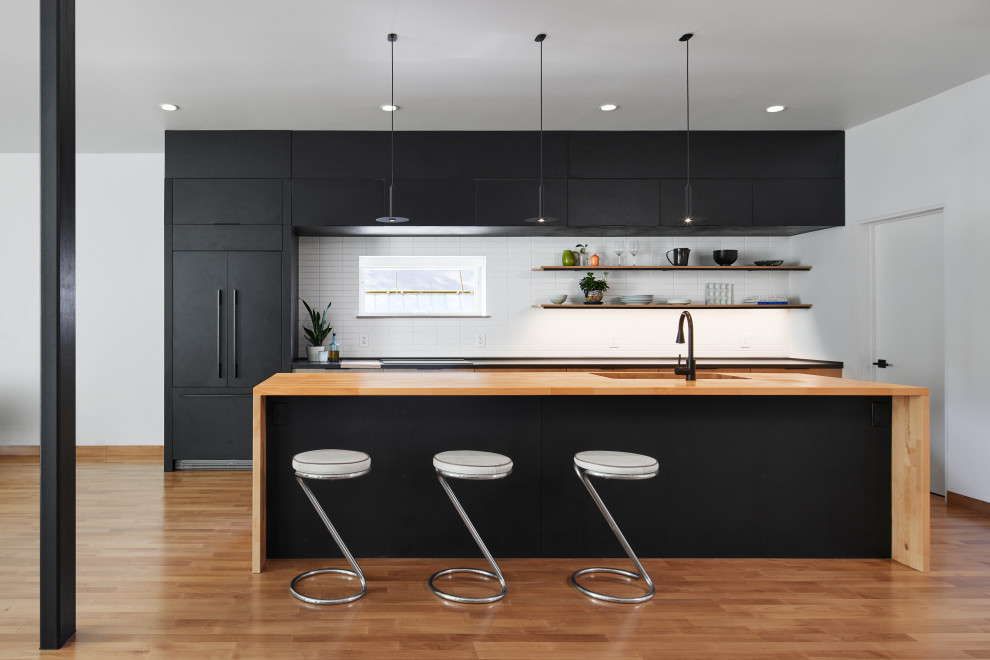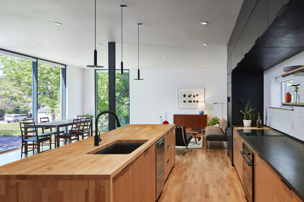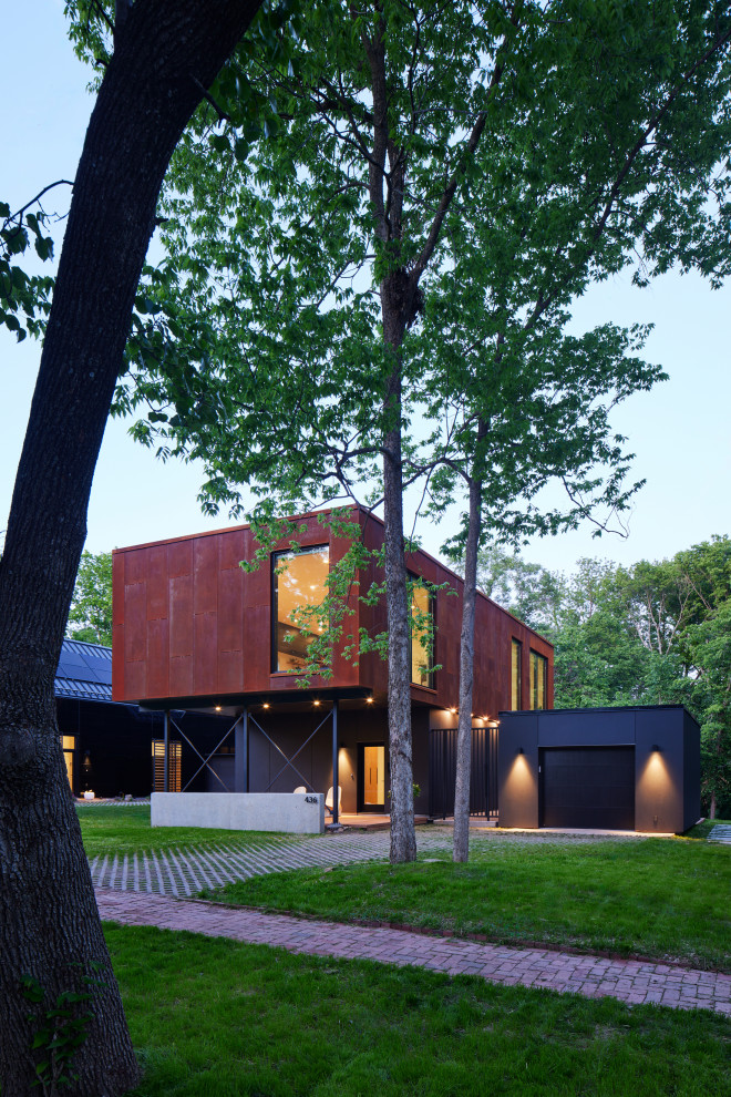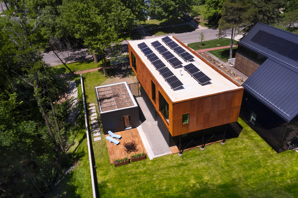 <p dir="rtl">خانهای مدرن در خیابان ایندیانا 436 در لورنس کانزاس، حاصل تلاش دانشجویان استودیو 804 در دانشگاه کانزاس است که بهطور کامل از پایه طراحی و اجرا شده است. این خانه در محلهی جذاب Pinkney و در قلب شهر قرار دارد، جایی که درختان بالغ سایهبان زیبایی بر فضای اطراف ایجاد کردهاند. موقعیت مکانی آن، دسترسی آسانی به امکانات شهری ارزشمند فراهم میکند؛ تنها چند بلوک با بیمارستان مرکزی لورنس و مرکز شهر فاصله دارد؛ جایی پرجنبوجوش با فروشگاهها، رستورانها و فعالیتهای فرهنگی متنوع.</p><p dir="rtl">در نزدیکی این خانه، رودخانهی کانزاس قرار دارد که بهعنوان یک مسیر ملی آبنوردی شناخته میشود و پارکهای آبی آن تا مرکز شهر امتداد دارند. مسیر دوچرخهسواری Lawrence Loop، یک کمربند سبز شهری ۲۲ مایلی، نیز در دسترس ساکنان این خانه قرار دارد. همچنین دسترسی پیاده و اتصال به سیستم حملونقل عمومی، امکان زندگی بدون خودرو را فراهم میسازد. این خانه، تلاقی زیبایی از تاریخ شهر لورنس و آیندهی طراحی پایدار است.</p><h3 dir="rtl">طراحی با استانداردهای LEED پلاتینیوم</h3><p dir="rtl">خانهی 436 ایندیانا با بالاترین سطح استانداردهای طراحی پایدار یعنی LEED پلاتینیوم از شورای ساختمانسازی سبز ایالات متحده (USGBC) ساخته شده است. این خانه، هفدهمین پروژهی استودیو 804 است که موفق به دریافت این گواهینامه شده. مأموریت استودیو 804 کاهش اثرات منفی زیستمحیطی و بهبود کیفیت زندگی و محیط است.</p><p dir="rtl">استودیو 804 یک تجربهی طراحی و ساخت کامل و عملی برای دانشجویان کارشناسی ارشد معماری در دانشگاه کانزاس است. این مؤسسهی غیرانتفاعی، پیشرو در طراحی پایدار محسوب میشود و تاکنون 17 پروژهی LEED پلاتینیوم، یک پروژهی طلایی و سه پروژهی گواهیشده توسط Passive House آمریکا را به انجام رسانده است.</p><h3 dir="rtl">ویژگیهای پایدار خانه</h3><p dir="rtl"><strong>انرژی تجدیدپذیر:</strong><br> سقف خانه مجهز به 16 پنل خورشیدی 535 واتی است که توان تولید برق مورد نیاز خانه را تا حد زیادی تأمین میکنند. انرژی مازاد نیز در شبکه ذخیره میشود تا در زمان عدم تابش خورشید مورد استفاده قرار گیرد.</p><p dir="rtl"><strong>عایقکاری:</strong><br> مطابق با دستورالعملهای USGBC، عایقهای حرارتی این خانه 20٪ بیشتر از حد کدهای ساختمانی رایج است. دیوارها دارای R-value در بازهی ۳۰ تا ۳۹ هستند و سقف نیز حدود R-60 را ارائه میدهد.</p><p dir="rtl"><strong>لایههای کنترل:</strong><br> استفاده از لایههای باکیفیت کنترل هوا، بخار و آب، مانع نفوذ رطوبت و هوا به داخل ساختمان میشود. خانه همچنین تست درببلور را با موفقیت پشت سر گذاشته که نشانهای از عایقبندی هوایی مناسب است.</p><p dir="rtl"><strong>در و پنجرهها:</strong><br> پنجرهها و درهای سهلایه با کارایی بالا به حفظ انرژی و تهویهی طبیعی کمک میکنند. برخی پنجرهها نیز از شیشههای بازیافتی پردهای هستند.</p><p dir="rtl"><strong>پوشش داخلی:</strong><br> تمام مصالح داخلی دارای میزان بسیار پایین VOC (ترکیبات آلی فرار) هستند.</p><p dir="rtl"><strong>نمای تهویهپذیر (Rainscreen):</strong><br> استفاده از سیستم نمای تهویهپذیر باعث بهبود عملکرد حرارتی و مدیریت بهتر آب میشود. مصالح نمای خانه قابل بازیافت هستند.</p><p dir="rtl"><strong>پوشش بیرونی:</strong><br> سیستم نمای کورتن و Richlite دوام بالا و نگهداری آسانی برای ساکنین فراهم میکند.</p><p dir="rtl"><strong>روشنایی و برق:</strong><br> تمام چراغها از نوع LED با رتبه Energy Star هستند. نورپردازی بیرونی طوری طراحی شده که آلودگی نوری شبانه را به حداقل برساند.</p><p dir="rtl"><strong>لوازم خانگی:</strong><br> تمام وسایل آشپزخانه دارای رتبه Energy Star و تجهیزات بهداشتی نیز دارای تأییدیه Water Sense هستند. سیستم آب گرم توسط پمپ هیبریدی حرارتی تأمین میشود که نزدیکترین فاصله را با خروجیها دارد.</p><p dir="rtl"><strong>مدیریت آبهای سطحی:</strong><br> موزاییکهای قابل نفوذ در مسیر ورودی، از ایجاد روانآبهای مضر جلوگیری میکنند. همچنین یک باغ بارانی در شرق ساختمان، روانآبهای سقف و زهکشی محیط را جذب میکند.</p><h3 dir="rtl">استفاده از مصالح بازیافتی</h3><p dir="rtl">استودیو 804 با نگهداری مصال