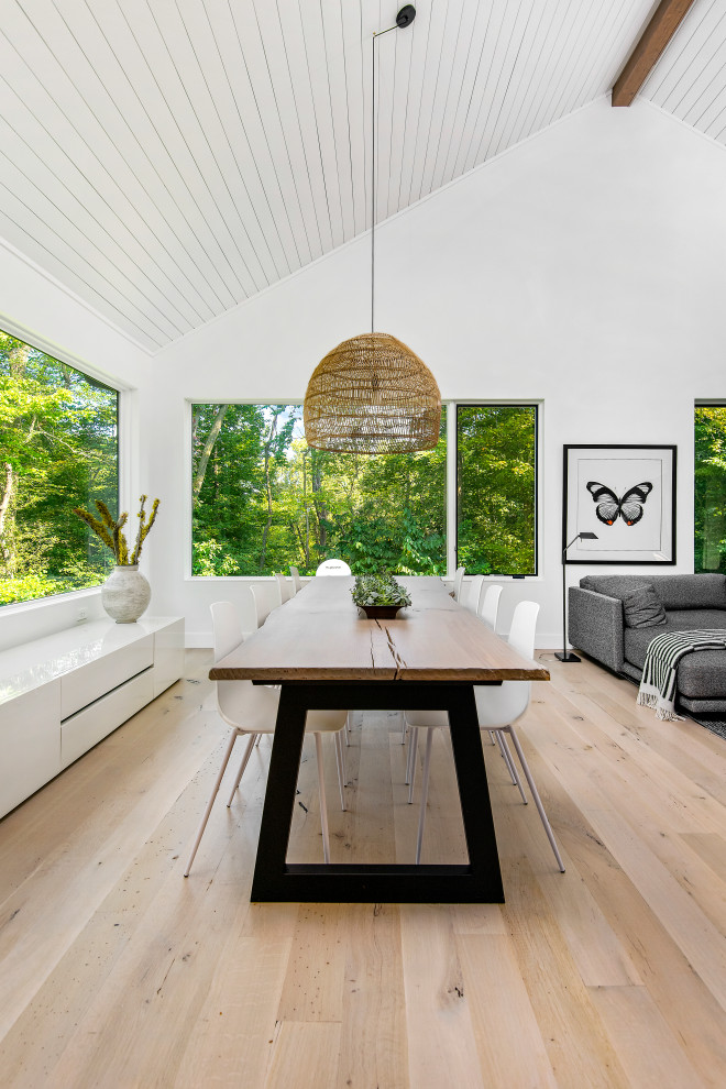 <p dir="rtl">این زوج یک خانه‌ی دوم خریدند تا از زندگی شهری فاصله بگیرند. آن‌ها که عمدتاً در مرکز شهر شیکاگو زندگی می‌کنند، به دنبال مکانی برای ارتباط بیشتر با طبیعت بودند. خانه در زمینی به مساحت ۸۰ جریب (حدود ۳۲ هکتار) قرار دارد و در بخش پشتی یک زمین جنگلی واقع شده که شامل یک برکه، استخر و اتاق بازی جداگانه است.</p><p dir="rtl">این خانه دارای چهار اتاق‌خواب، یک اتاق دو‌طبقه (با تخت‌های دو‌طبقه) و پنج حمام کامل است. ساختمان به طور کامل بازسازی شد؛ یعنی تا اسکلت اصلی تخریب و دوباره ساخته شد. "لینک" نمای بیرونی را اصلاح کرد و با حذف بالکن‌ها، حذف سایه‌بان سقف، افزودن پوشش عمودی برای دیوارها و رنگ‌آمیزی سیاه ساختمان، ظاهری مدرن به آن بخشید.</p><p dir="rtl">گاراژ نیز به اتاق تفریحی مستقل تبدیل شد و یک استخر جدید با دوش فضای باز، سنگ‌فرش بتنی، دیوار چوبی ipe و محوطه‌ای از سنگ آهک به آن اضافه شد.</p><p dir="rtl"><strong>مکان:</strong> رولینگ پریری، ایندیانا<br> <strong>معمار، طراح و سازنده اختصاصی:</strong> Linc Thelen Design<br> <strong>وسعت ملک:</strong> ۸۰ جریب، <strong>زیربنای خانه:</strong> ۳۲۰۰ فوت مربع (حدود ۲۹۷ متر مربع)</p>