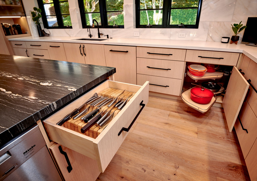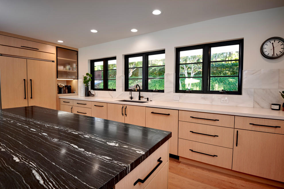 <p>&nbsp;</p><p dir="rtl">این پروژه مربوط به خانه‌ای قدیمی از دهه ۱۹۸۰ با زیربنای ۳۵۰ متر مربع در یک طبقه و مشرف به زمین گلف است. کارفرما که به‌تازگی به این منطقه نقل مکان کرده بود، به دنبال نوسازی کامل خانه و ایجاد فضایی مدرن و مینیمال بود.</p><p dir="rtl">ترکیب خطوط ساده با متریال خنثی، خانه را به‌زیبایی در دل طبیعت اطراف حل می‌کند و اجرای دقیق جزئیات، ظاهری تمیز و امروزی به فضا می‌بخشد.</p><p dir="rtl">اولین دیدار ما با کارفرما زمانی بود که برای بازطراحی آشپزخانه آینده‌شان دعوت شدیم. تیم قبلی پیشرفتی در طراحی نداشت، بنابراین ما وارد پروژه شدیم و روند را به‌دست گرفتیم. نتیجه، یک آشپزخانه بزرگ، باز و جذاب شد که سرآغاز بازسازی کل خانه بود.</p><p dir="rtl">یکی از چالش‌های اصلی، رسیدن به جزییات مورد نظر کارفرما در عین پایبندی به بودجه مشخص بود. این پروژه بخشی از مجموعه بازسازی‌های ما در منطقه RSF محسوب می‌شود.</p><p dir="rtl"><strong>سازنده:</strong> Alessi Builders<br> <strong>معمار:</strong> @t7architecture<br> <strong>طراحی آشپزخانه و حمام:</strong> @signaturedesigns_kbi<br> <strong>دکوراسیون داخلی:</strong> @sawdust.interiors<br> <strong>عکاسی:</strong> @ivester_creative&nbsp;</p>