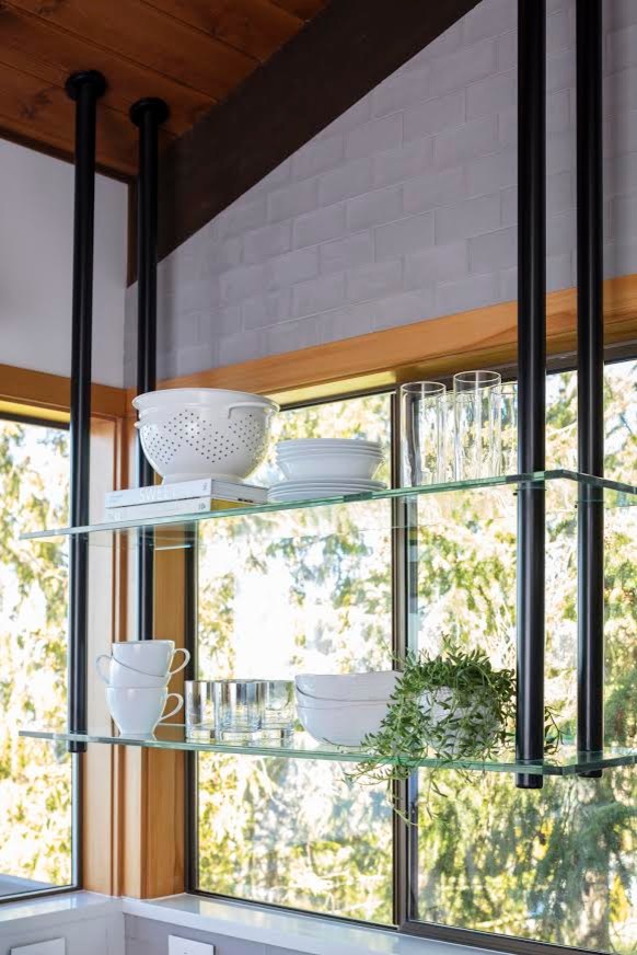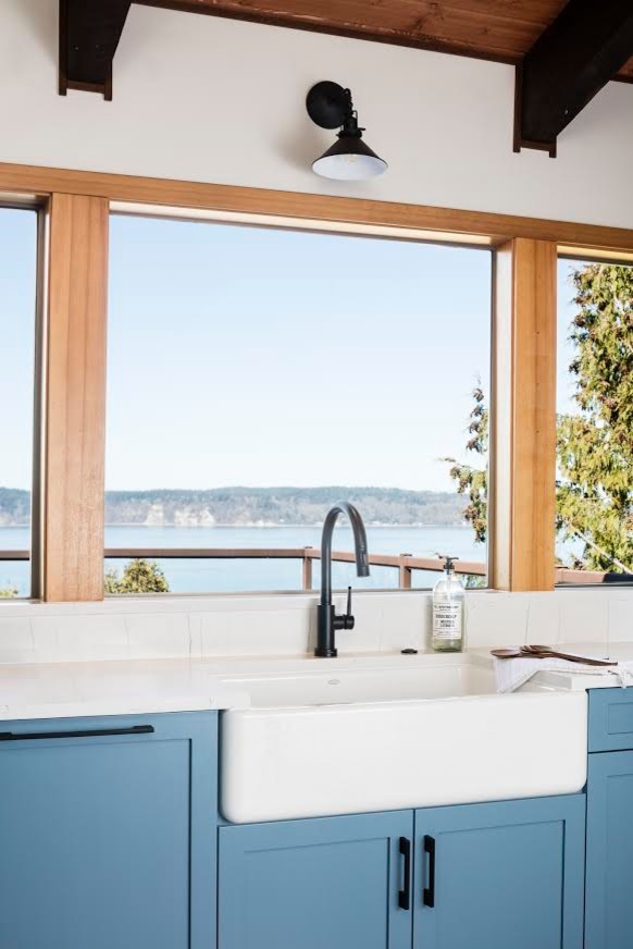 <p dir="rtl"> وقتی برای جلسهی مشاورهی اولیه به موکیلتئو رفتیم، بلافاصله عاشق این خانه شدیم.<br> با سقفهای بلند، ترکیب متنوعی از چوب، شیشه و فولاد، و چشمانداز زیبای خلیج پوگت، خیلی سریع این پروژه را "گوهر موکِلتِئو" نامگذاری کردیم.</p><p dir="rtl">مشتری ما که یک آشپز و نانواست، از آشپزخانهی فعلی خود راضی نبود.<br> مهمترین مشکلات، کم بودن طول پیشخوانهای قابل استفاده، کمبود فضای ذخیرهسازی و کمبود نور بود.<br> به همین دلیل از ما خواسته شد ایدههای بزرگ و جسورانهای را در یک آشپزخانهی کوچک اما با پتانسیل بالا پیاده کنیم.</p><p dir="rtl">ما به طور کامل چیدمان اتاق را تغییر دادیم: یک دیوار بلند با قفسههای توکار ساختیم و یک پیشخوان U شکلِ پیوسته ایجاد کردیم.<br> در اوایل پروژه، فهرستی از تمام وسایلی که مشتریان میخواستند در آشپزخانه ذخیره کنند تهیه کردیم و اطمینان یافتیم که هر قاشق، ابزار و کاسهای جای مشخصی در آشپزخانهی جدیدشان داشته باشد.</p><p dir="rtl">روکشها (متریال نهایی) با دقت زیاد انتخاب شدند تا هماهنگی در سراسر خانه حفظ شود. همچنین با استفاده از ترکیب رنگها بازی کردیم تا حس جسورانه ولی طبیعی ایجاد کنیم.</p><p dir="rtl">این آشپزخانه نمونهی برجستهای است از این که چگونه رنگ میتواند همزمان یک بیانیهی جسورانه ارائه دهد و حس آرامش و تعادل را منتقل کند.<br> در حالی که مشغول بهبود آشپزخانهی مشتری بودیم، ورودی خانه را هم بهروز کردیم. </p>