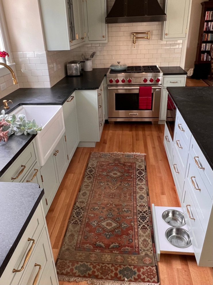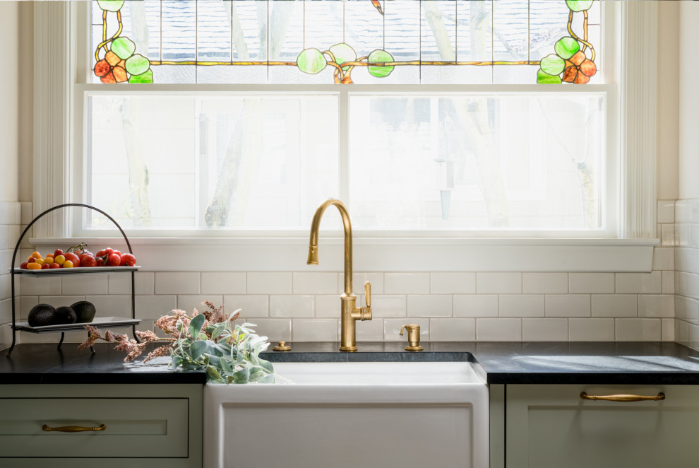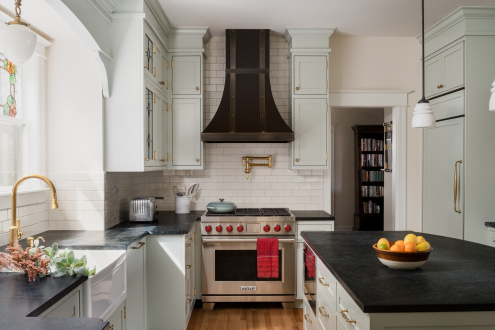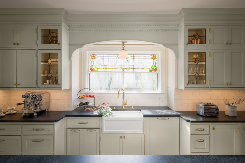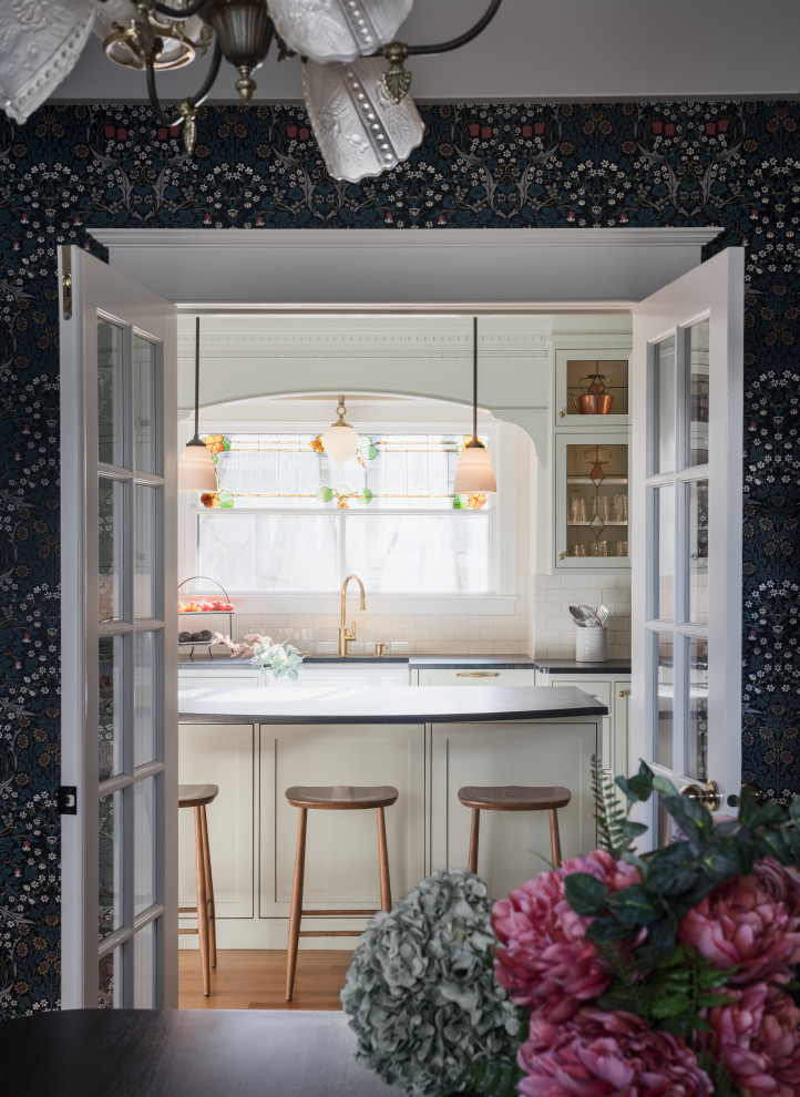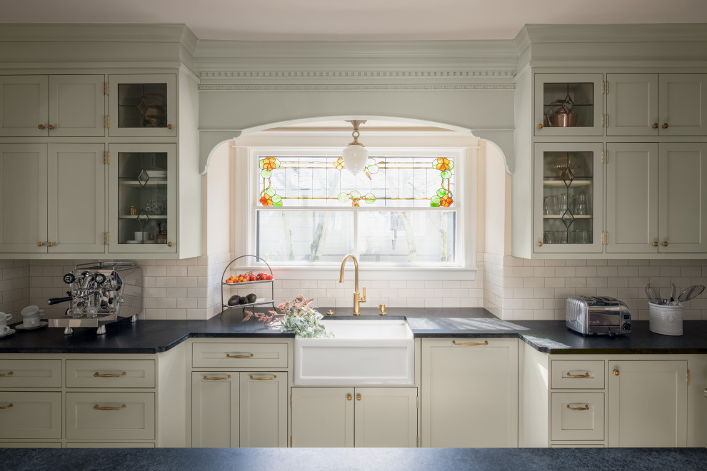 <p dir="rtl">متعادل کردن جذابیت کلاسیک خانه‌ای متعلق به سال ۱۹۰۶ با امکانات مدرن یک آشپزخانه‌ی امروزی، چالشی برای خلق یک آشپزخانه‌ی رؤیایی، اصیل و در عین حال کارآمد بود.<br>&nbsp;اصلاح چیدمان در فضای جمع‌وجور، انتخاب متریال‌ها و پوشش‌هایی که با گذر زمان زیبایی کهنه به خود بگیرند، و احترام به جزئیات تاریخی اصلی خانه، این زیبایی سنتی را شکل دادند.<br>&nbsp;یک قوس سفارشی که شامل قالب‌کاری دندانه‌ای (دنتیل) روی پنجره‌ی شیشه‌رنگی اصلی بود، به عنوان نقطه‌ی کانونی خیره‌کننده ساخته شد.</p><p dir="rtl">حمام‌ها نیز به گونه‌ای طراحی و بازسازی شدند که با شخصیت تاریخی خانه هماهنگ باشند.<br>&nbsp;در طول زمان، این جزئیات "تلاقی گذشته و حال" تنها زیباتر و یکپارچه‌تر با این بنای تاریخی خواهند شد.</p>