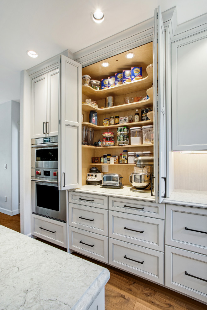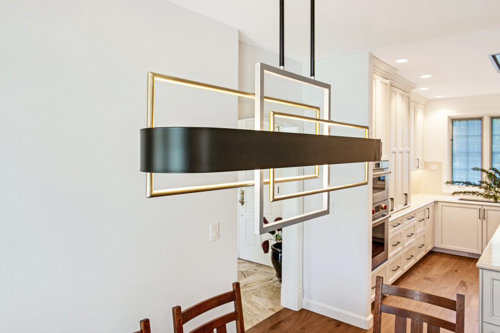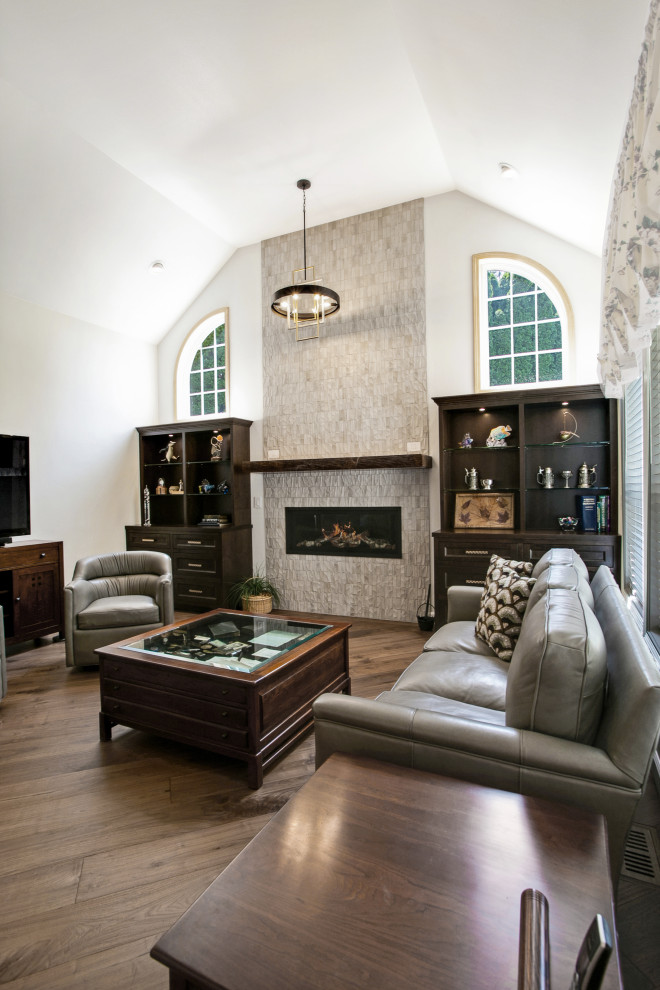 <p dir="rtl"><strong>طراحی مجدد این آشپزخانه باعث شد تا چیدمان جدیدی شکل بگیرد که فضای کار و نگهداری را به‌صورت منظم‌تر و کارآمدتر سازمان‌دهی کرده است. استفاده از هود جزیره توکار سقفی، حس باز بودن و یکپارچگی در فضا را تقویت می‌کند. مرکز اختصاصی پخت‌وپز با طراحی سفارشی، امکان دسترسی سریع و مرتب به ابزارها و مواد لازم را فراهم کرده است. کابینت‌های سفید با تناژ گرم در ترکیب با صفحه‌های کوارتز دارای لبه‌ منحنی کلاسیک، فضایی شیک و دلنشین پدید آورده‌اند. بار چوبی با کناره طبیعی و یخچال نوشیدنی نیز نقش مهمی در راحتی پذیرایی و افزایش کارایی فضا ایفا می‌کنند.</strong></p><p dir="rtl"><strong>در بخش نشیمن، شومینه‌ای خطی با طراحی مینیمال و پوشش کاشی‌های هندسی از کف تا سقف، به نقطه کانونی جدیدی در فضا تبدیل شده است. کابینت‌های سفارشی اطراف شومینه، ترکیبی متعادل از زیبایی بصری و کاربری ارائه می‌دهند.</strong></p>